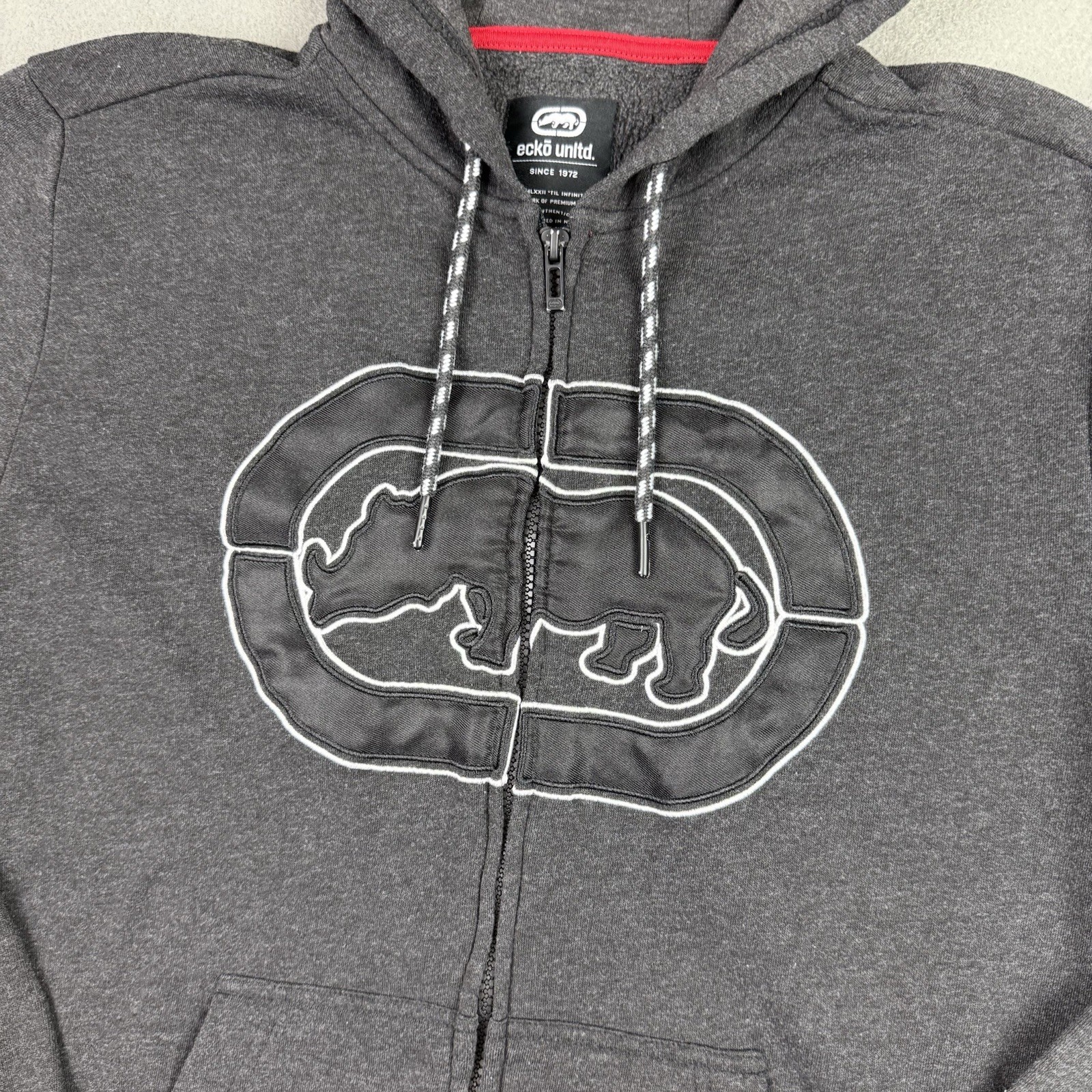 Ecko Unltd Gray Zip-Up Hoodie with Logo Mens Size Small Skater Y2K Style