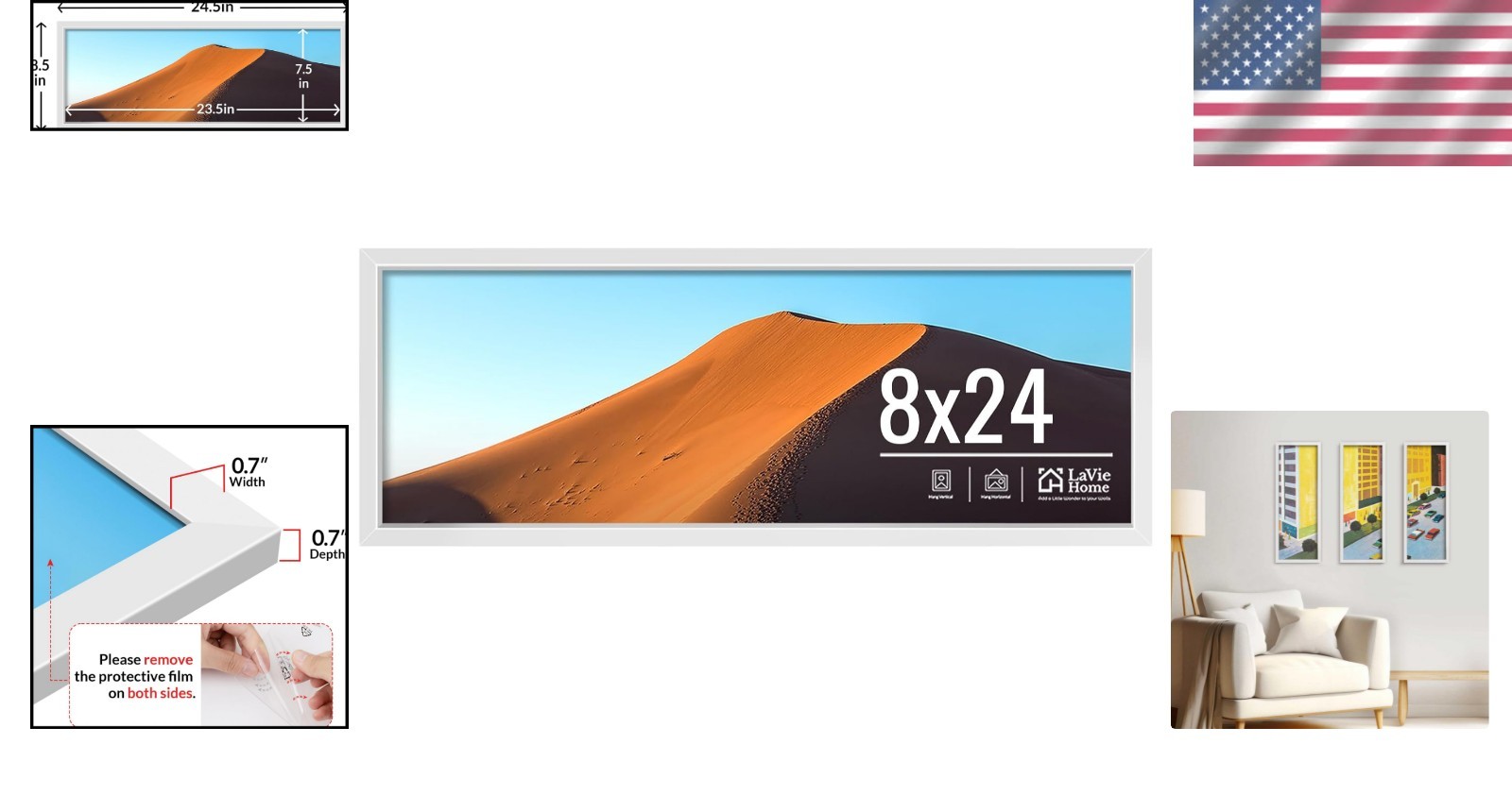 Elegant 8x24 White Picture Frame with HD Plexiglass - Versatile Display Option