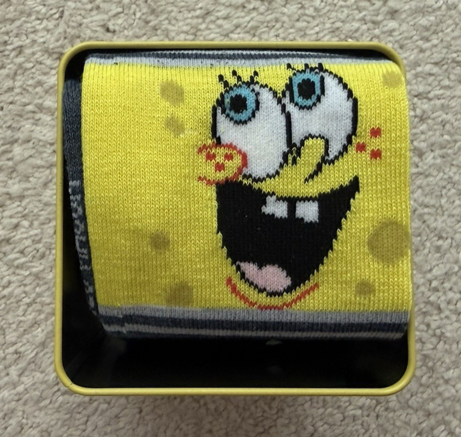 SpongeBob SquarePants Men's 3 Pack Crew Socks in Gift Metal Box Sz 6-12 NEW