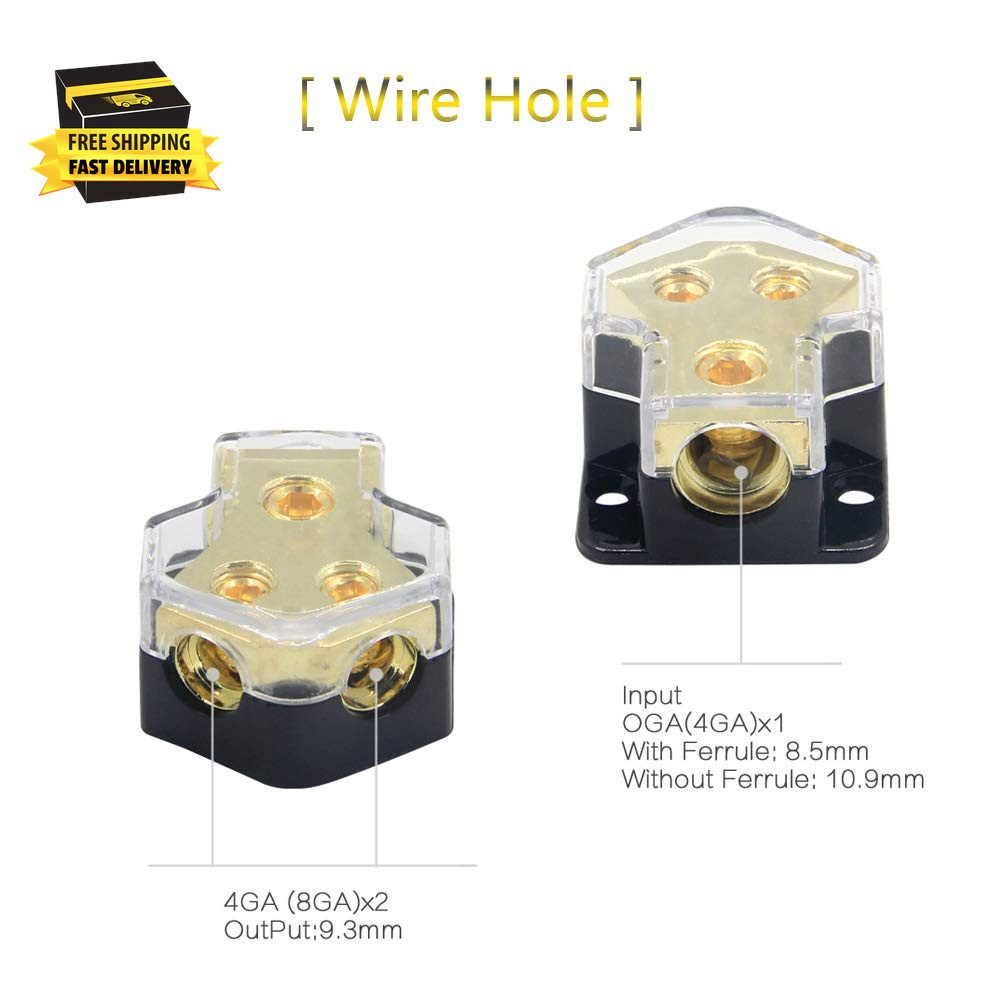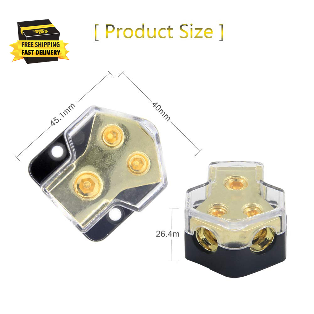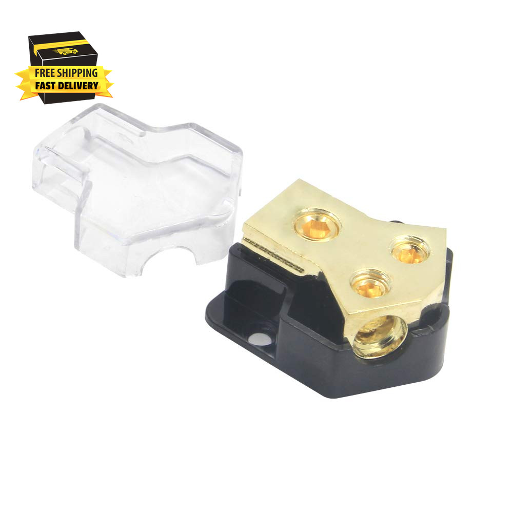 2 Way Power Distribution Block, 0/2/4 AWG Gauge In, 4/8/10 Gauge Out, Car Audio