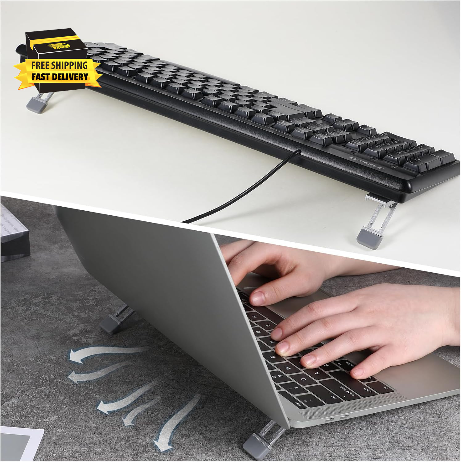 2 Pcs Portable Keyboard Riser, Three Tilt Angle Adjustable Foldable Invisible La
