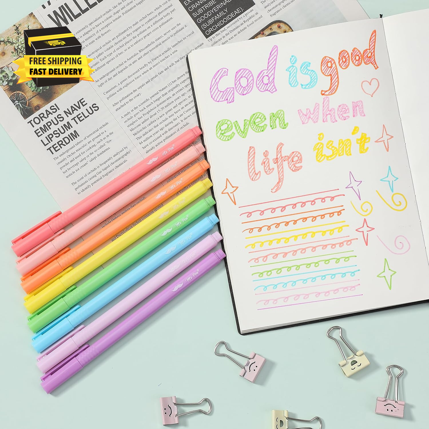 - Highlighters, 8 Pack, Fine Tip, Pastel Colors, Cute Highlighters