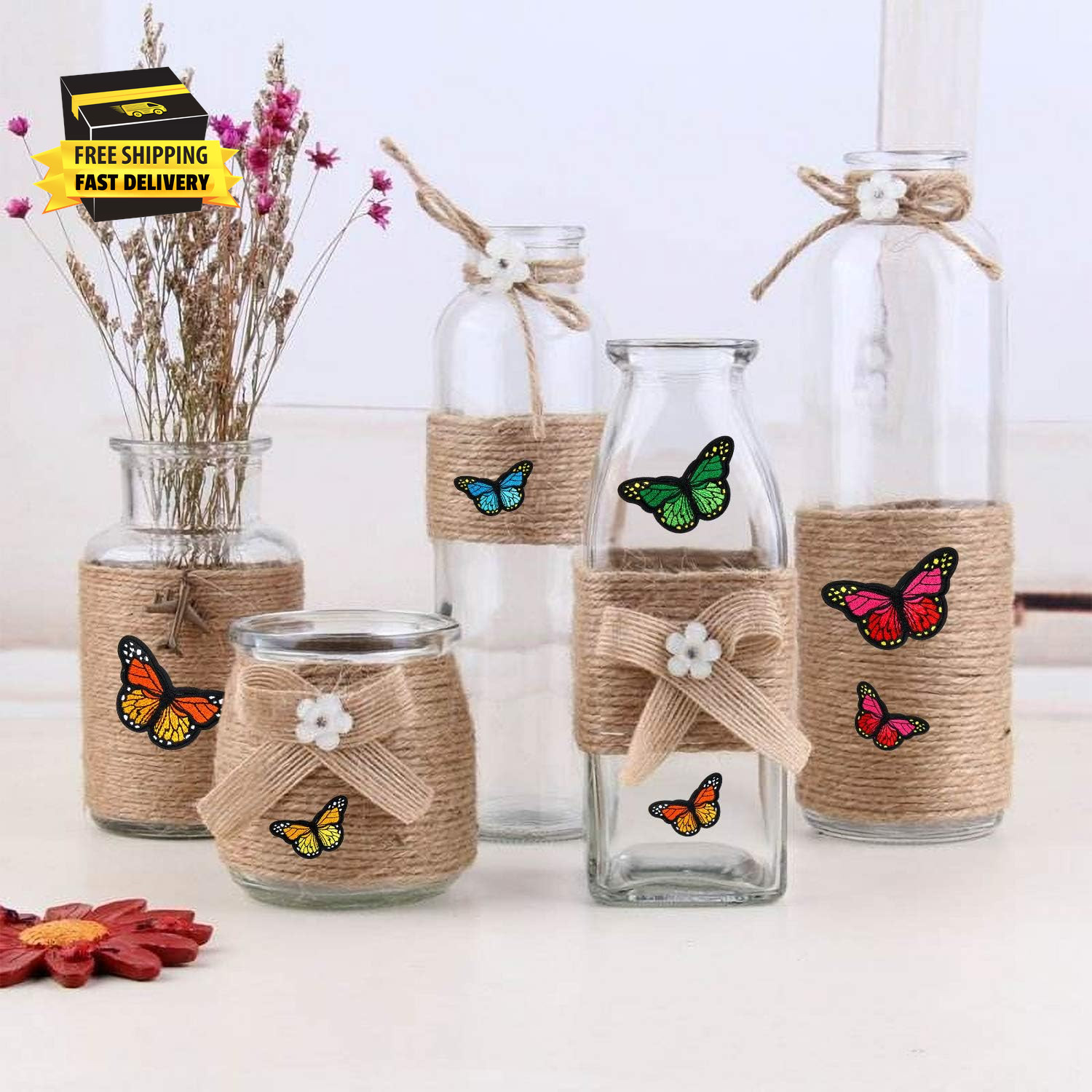 20Pcs Butterfly Iron on Patches, 2 Size Embroidered Sew Applique Repair Patch