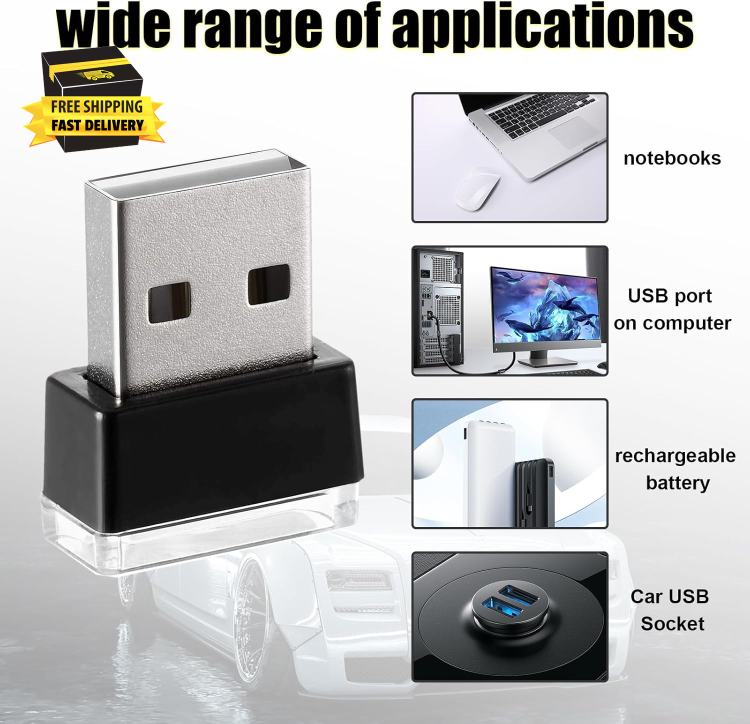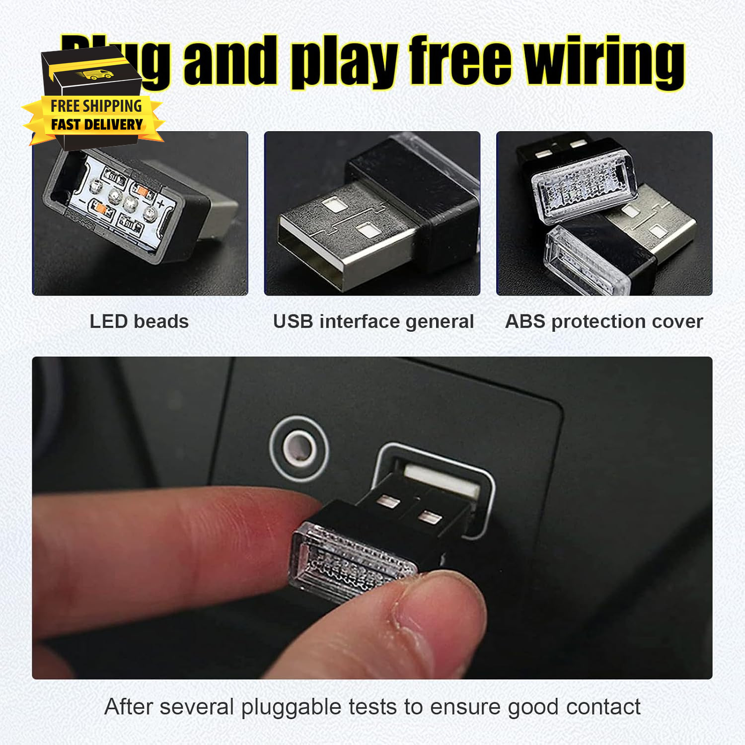 как выглядит 4 PCS USB LED Car Interior Atmosphere Lamp, Portable Mini LED Night Light, Plug- фото
