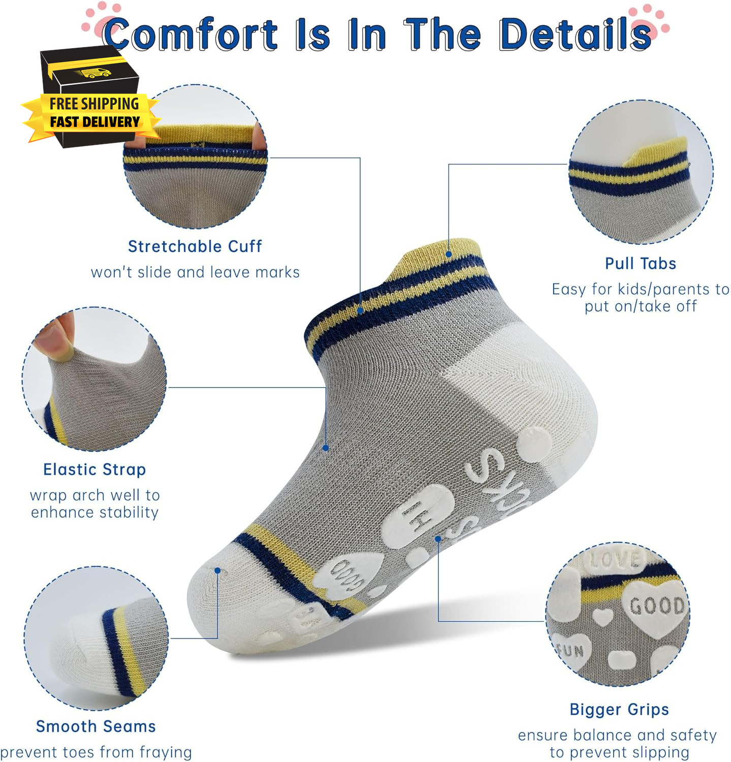 Toddler Non-Slip Ankle Socks with Grippers anti Slip Low Cut Socks for Baby Kids