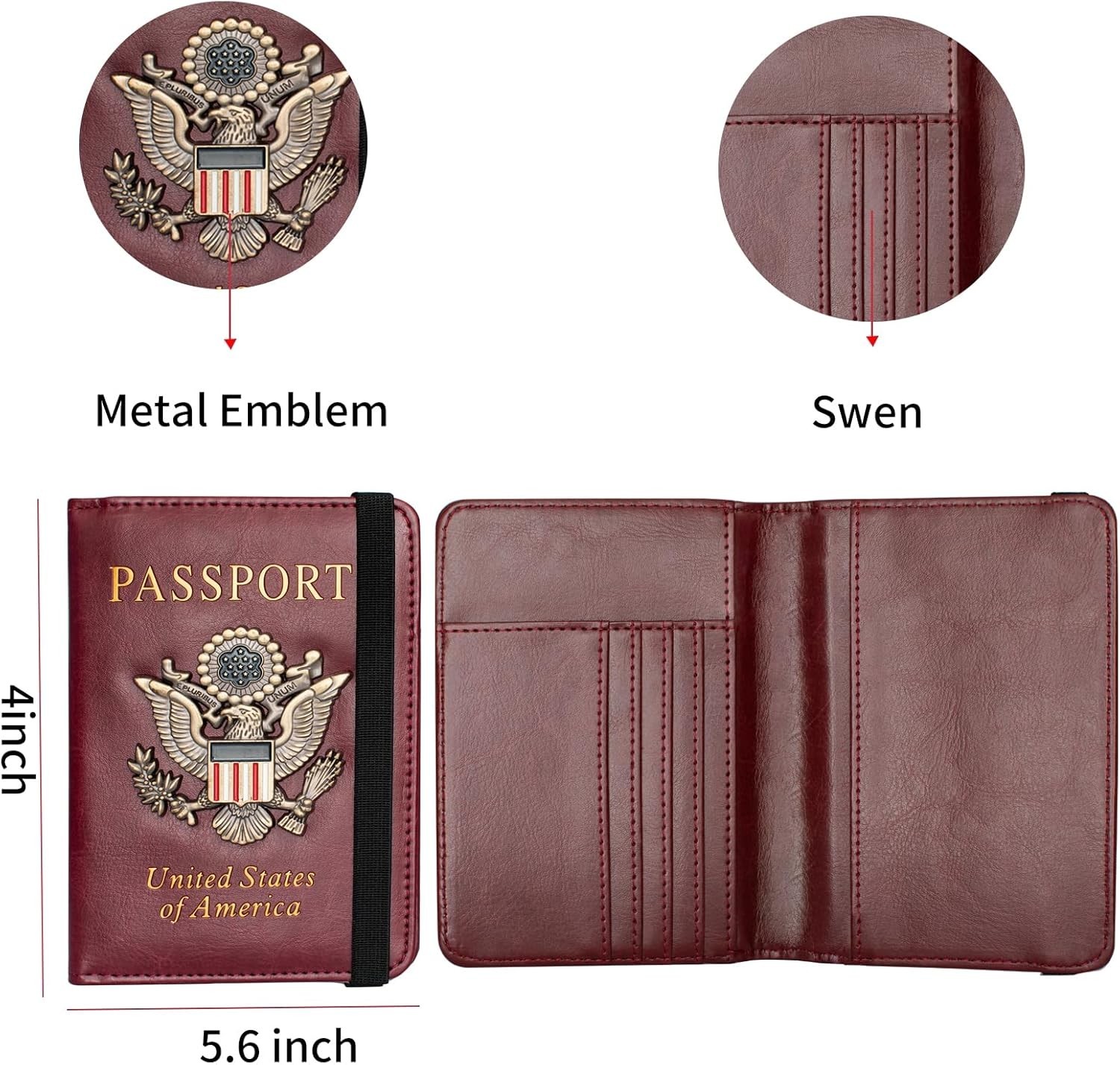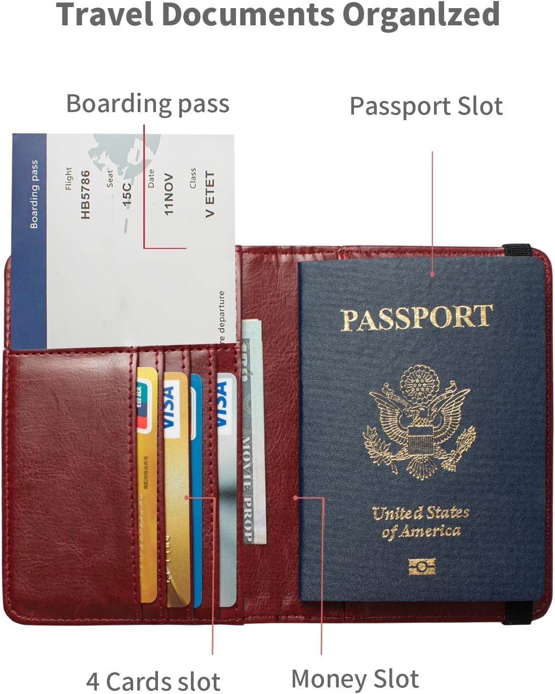 Passport Holder Cover and Card Case Slot Combo RFID Blocking Leather Travel Pass