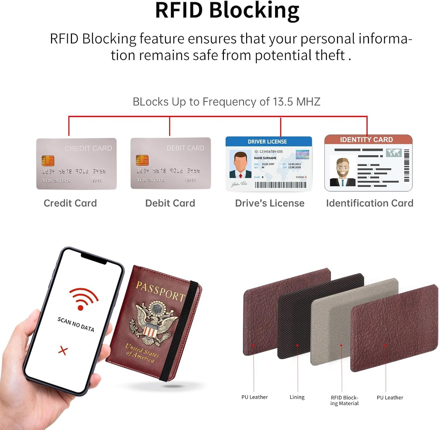 • Passport Holder Cover and Card Case Slot Combo RFID Blocking Leather Travel Pass