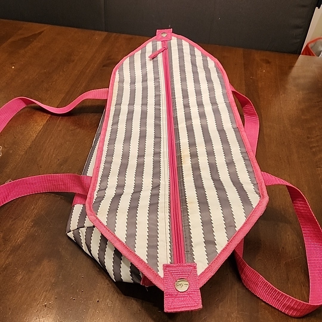 Thirty One 31 Large Insulated Cooler Thermal Tote Bag Pink Gray Striped Picnic