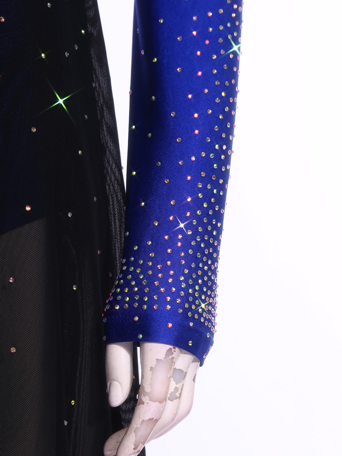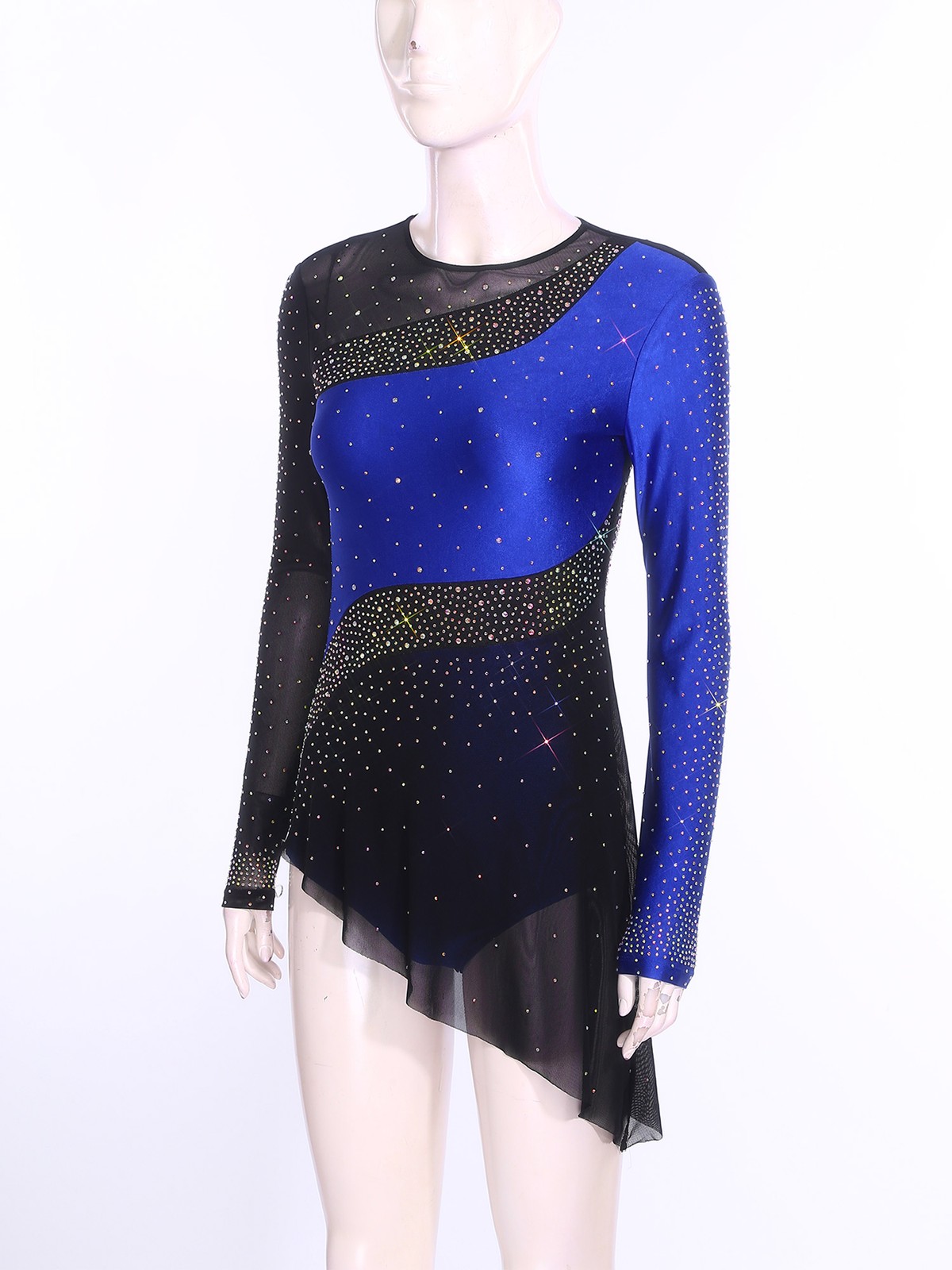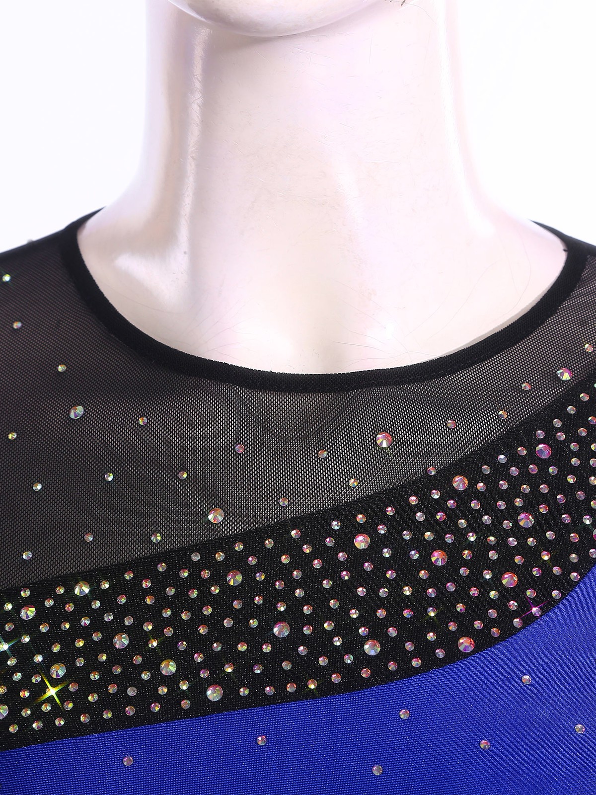 Womens Bodysuit Gymnastics Dress Crotch Dancewear Modern Dance Rhinestone Back