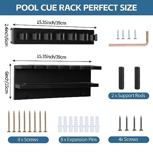 Included Components: Pool Cue Rack, Training Billiards Balls, Pool Cue Rack Claw, Pool