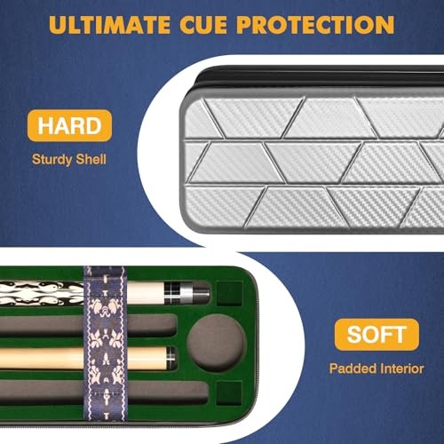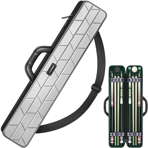 Pool Cue Case, Hard Shell Pool Stick Case 4x4 with 10 Padded Carbon Alloy Grey