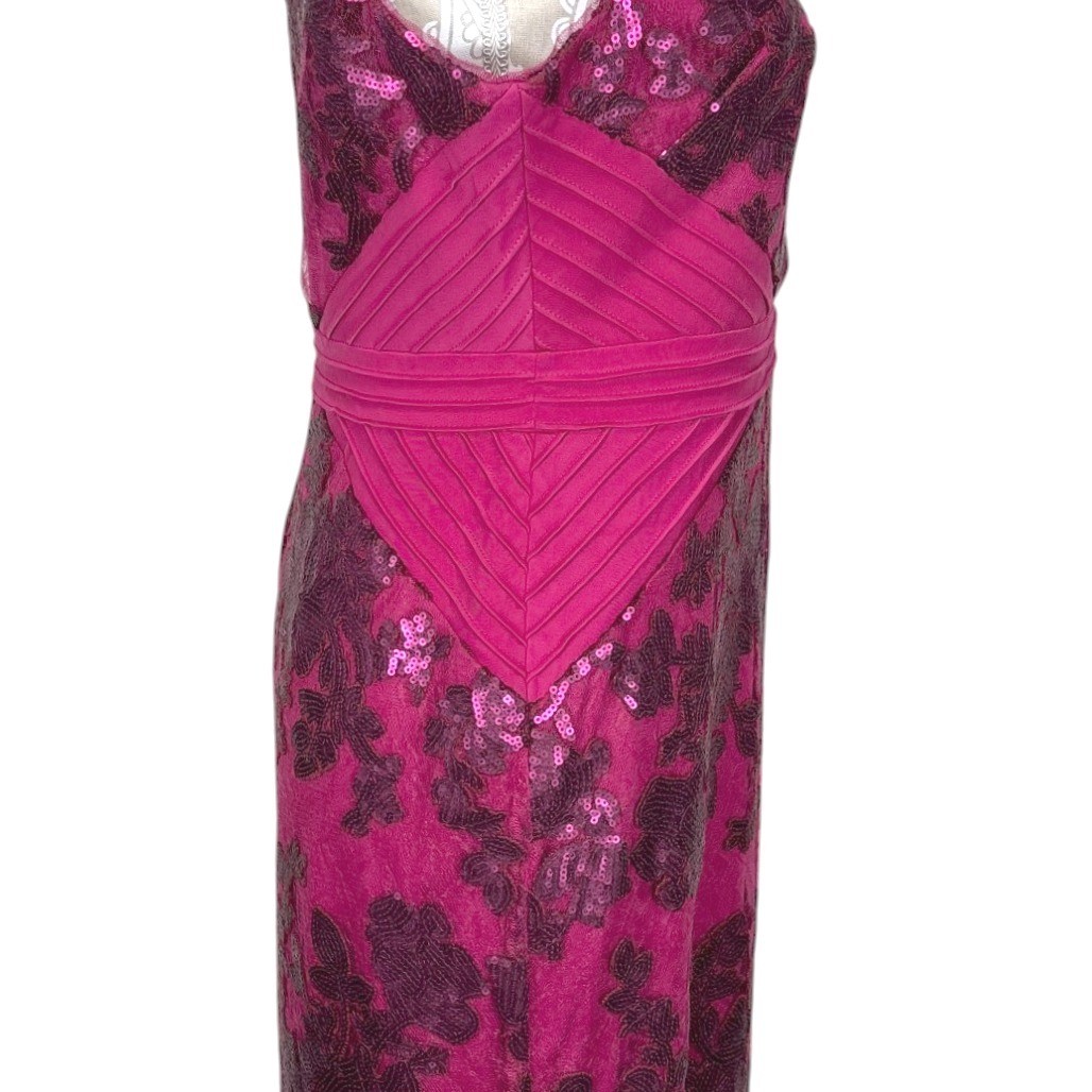 как выглядит NWT Adrianna Papell Cerise Pink Sequin Lace Pintuck Jersey Sheath Dress Size 10 фото