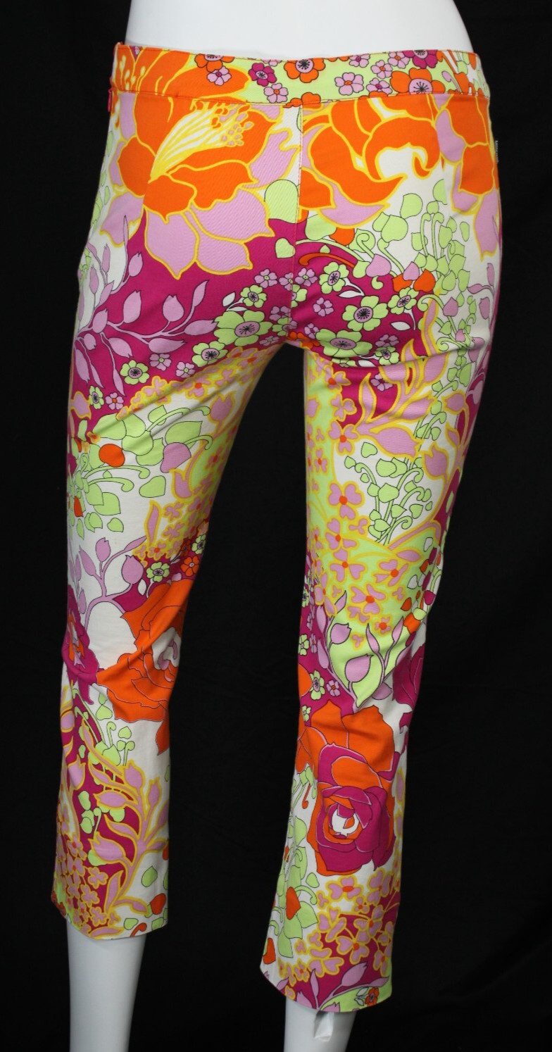 как выглядит MOSCHINO JEANS Vintage Multicolor Floral Print Cotton Twill Capri Pants 38 фото