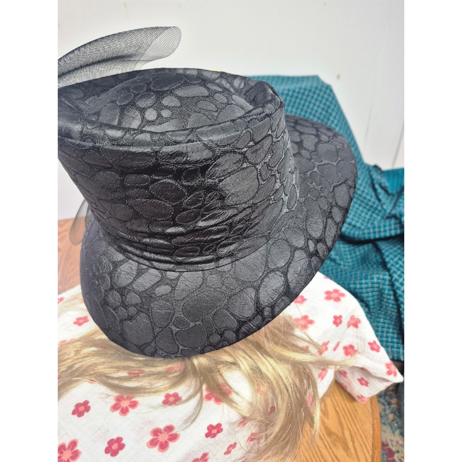 как выглядит Derby Wide Brim Hat Embellished with Gold Black Roses VIntage inspired retro 50s фото