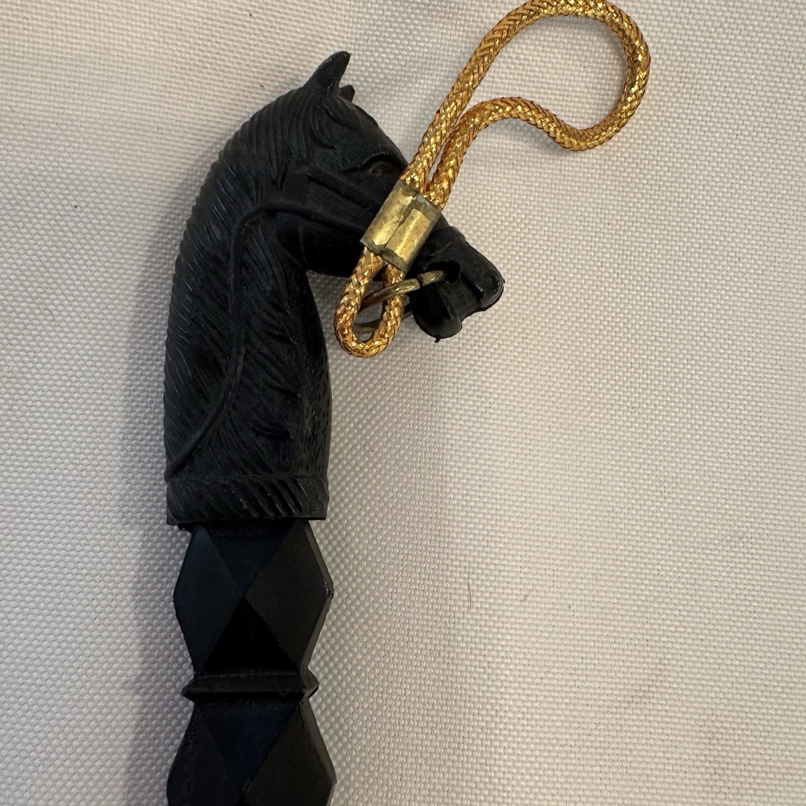Vintage Garment Brush Carved Black Horse Head Handle Gold Loop Equestrian Japan