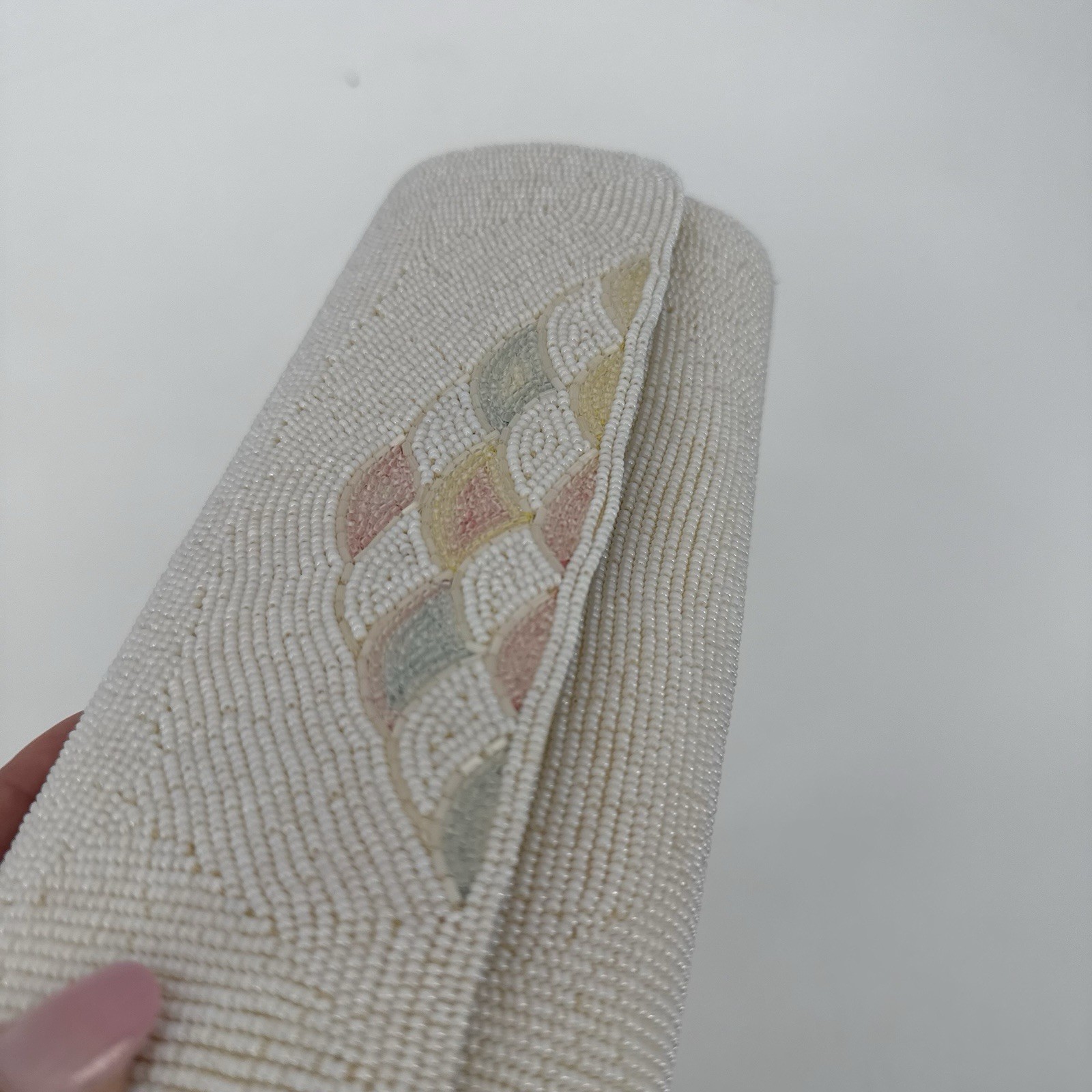Vintage Unbranded White Beaded Clutch Art Deco Pastel Clutch Bag Evening Satin
