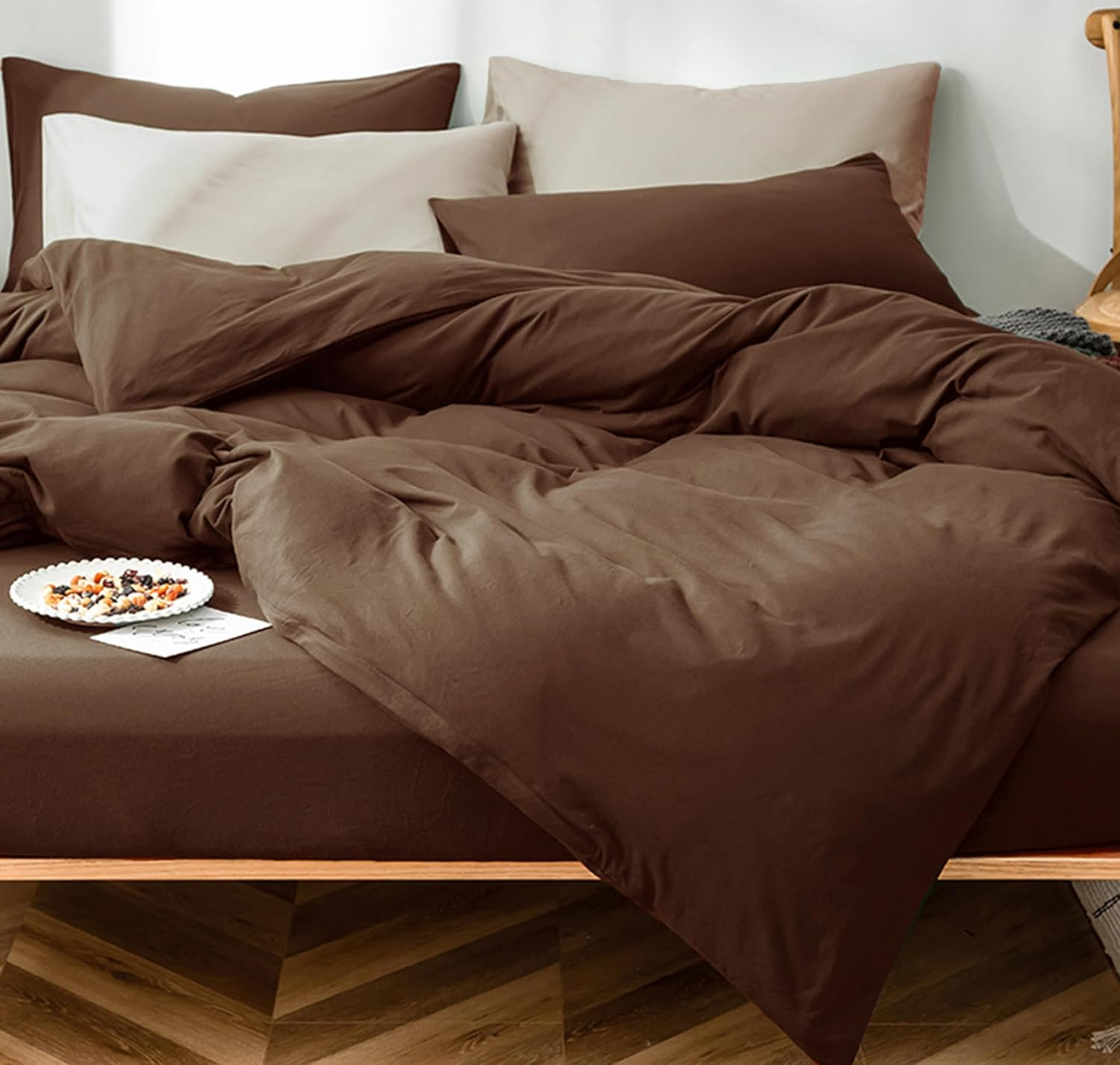 Brown Duvet Cover King Size Solid Mocha Coffee Color Bedding Duvet Cover 3 Piece
