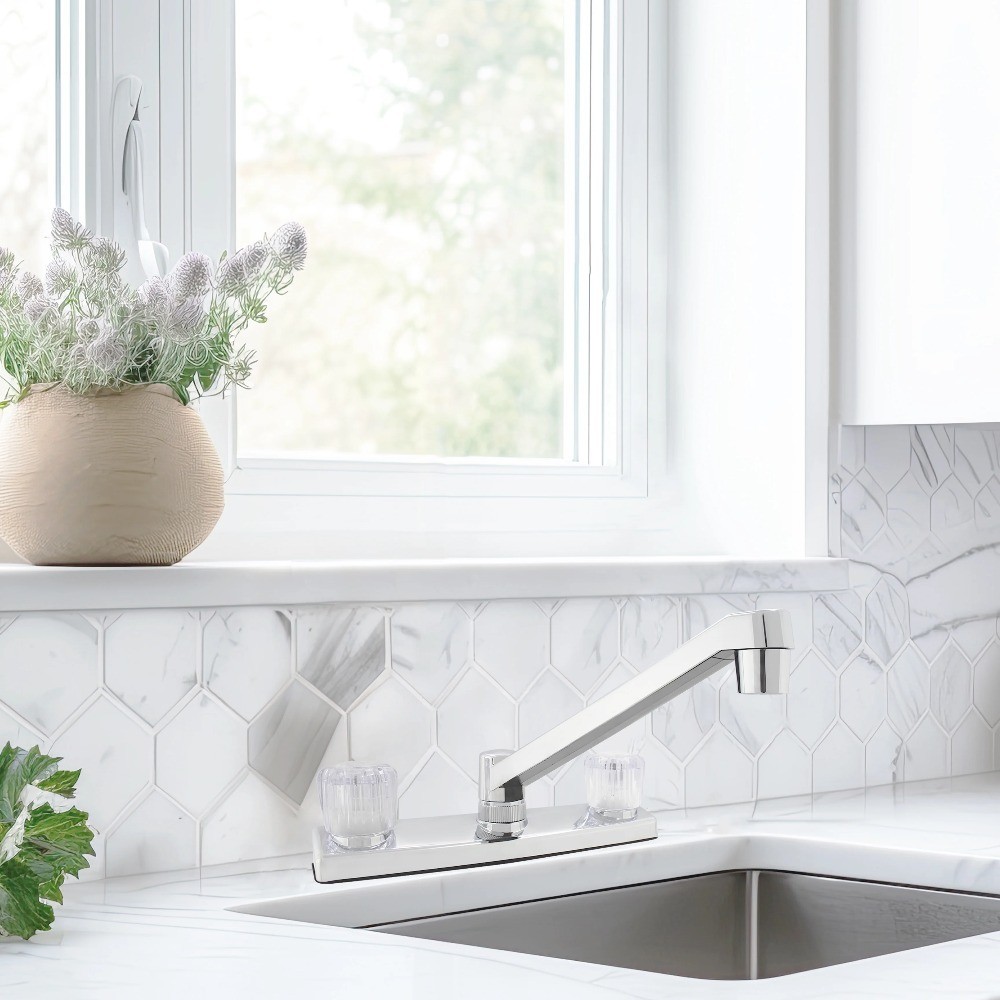 Kitchen Faucet with Acrylic Handles, Chrome Finish, Nonmetallic Body