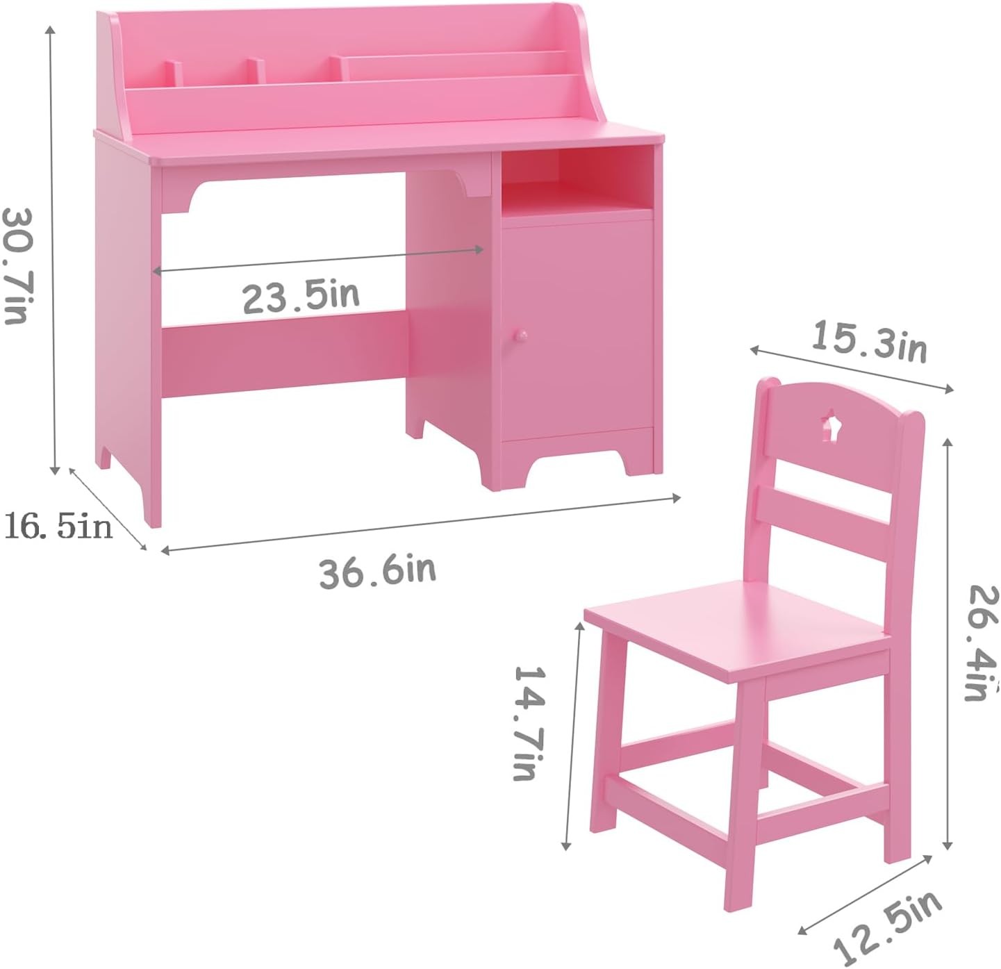 Kids Desk and Chair Set W/ Hutch Storage Cabinet Wooden Children Study Table