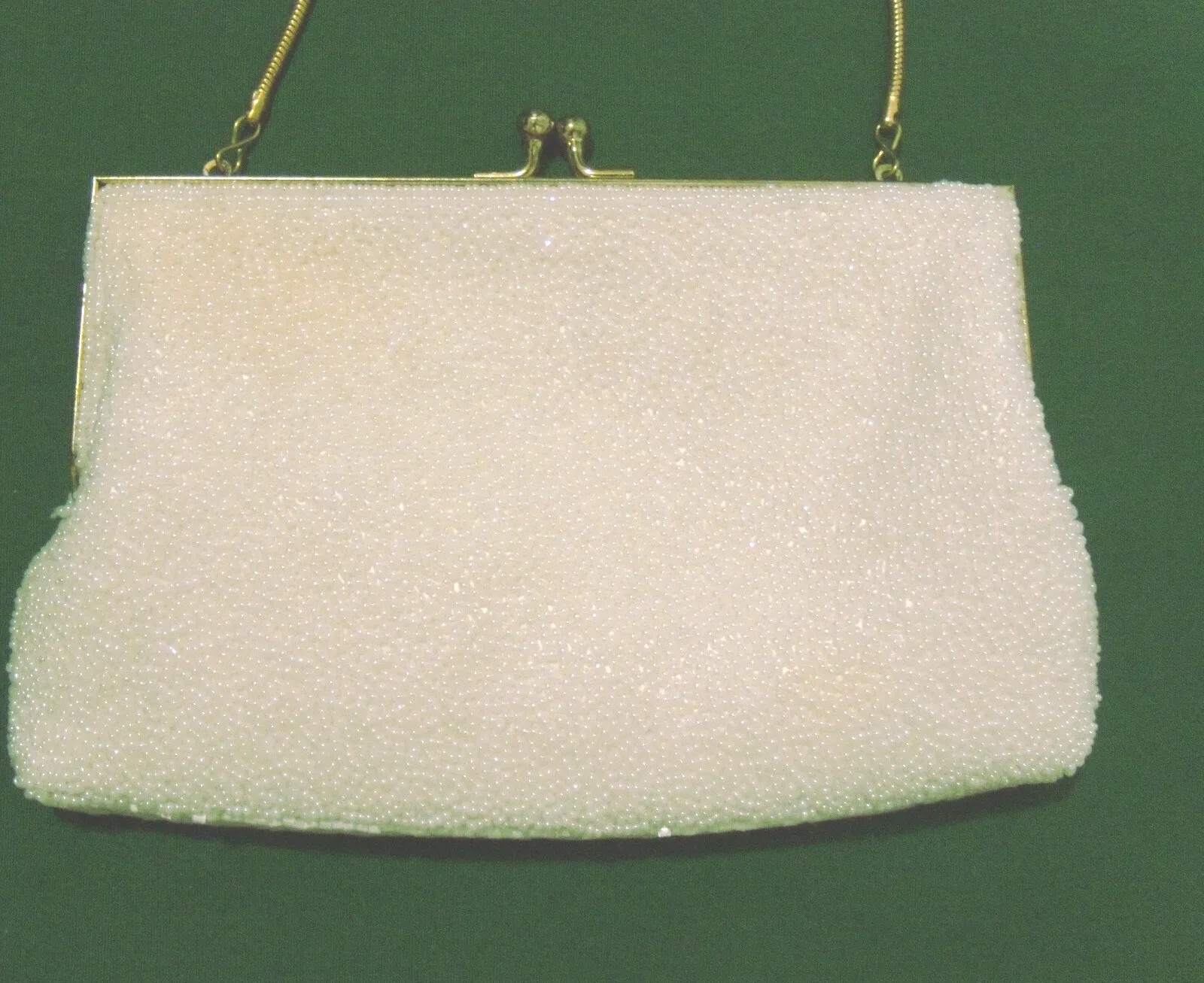 Vintage White Beaded Evening Purse Handbag Clutch 5x8
