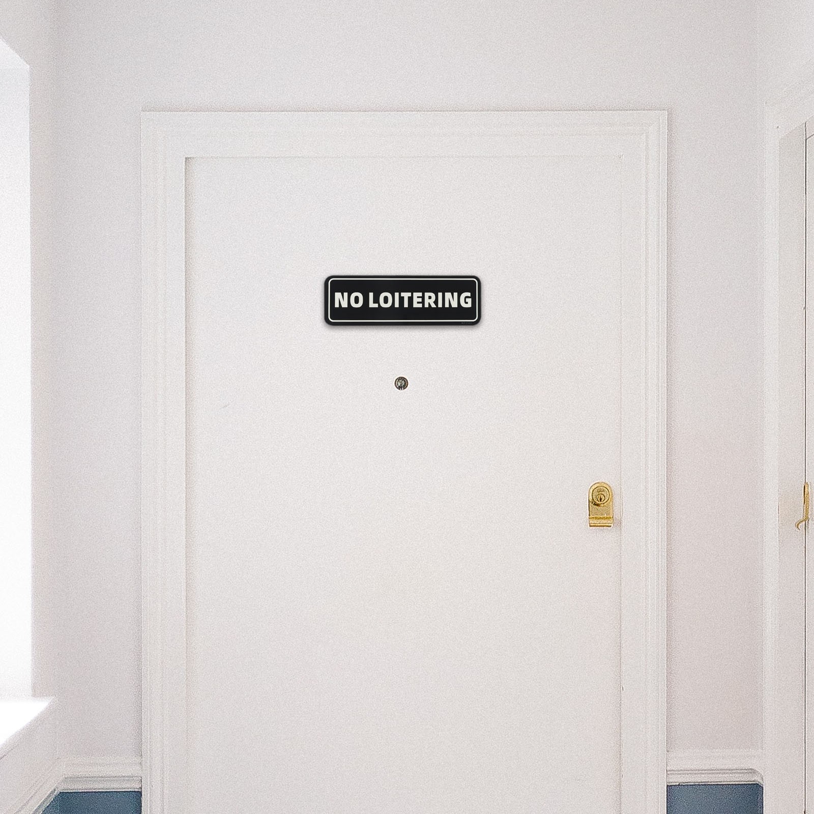 No Loitering Sign, 2pcs Acrylic 6x2 Holder Sign Sticker Symbol, Black