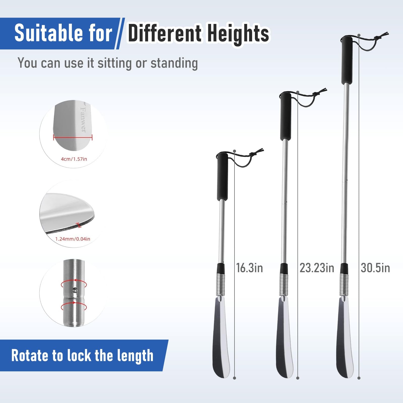 Fanwer Extendable Shoe Horn Long Handle for 2 Count Pack of 1 , Silver