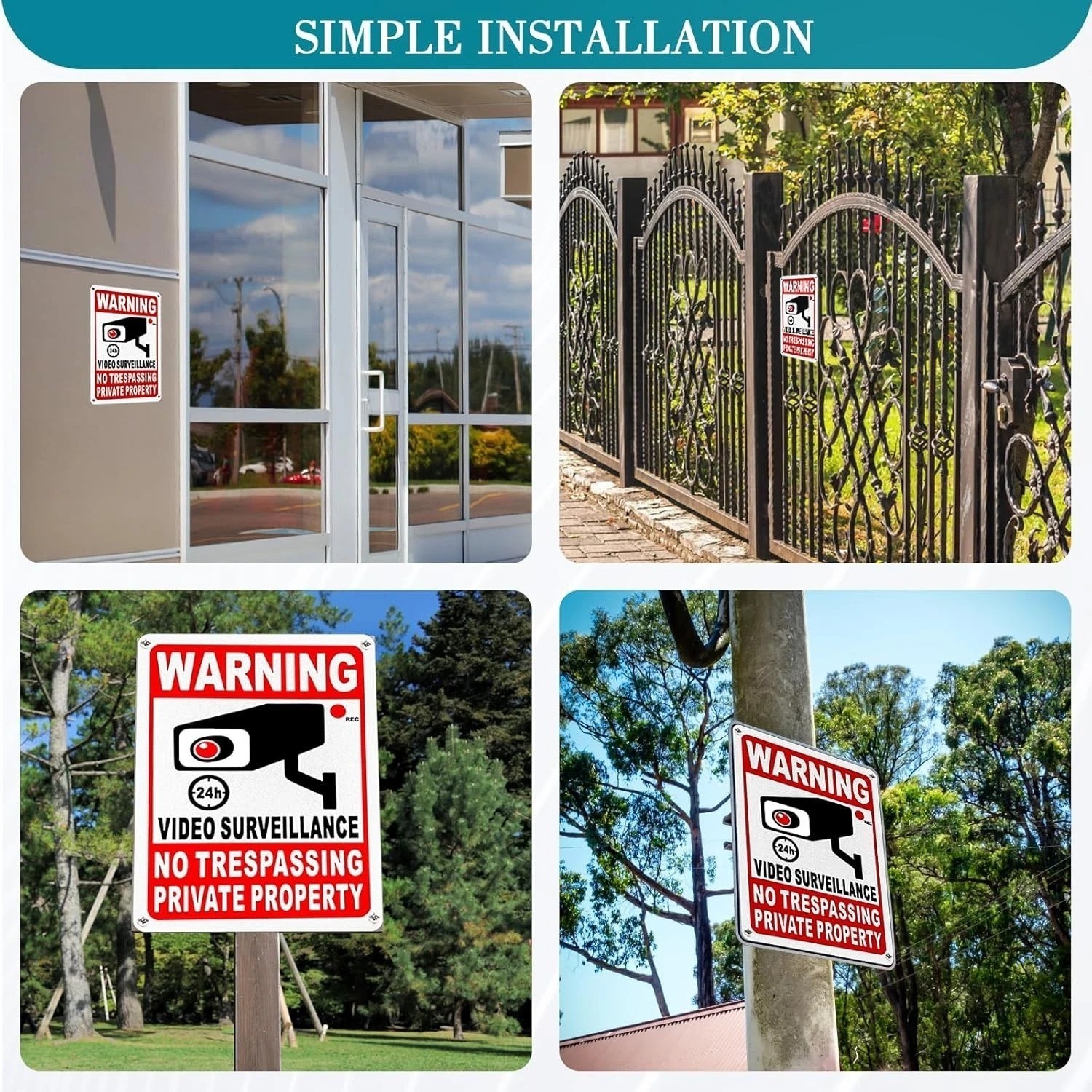4 Pack Private Property No Trespassing Signs Aluminum Yard Security Camera Sign