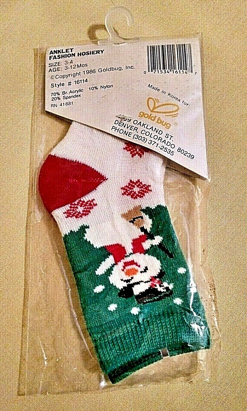 GOLDBUG SOCKS VINTAGE CHRISTMAS NOS 1986 ANKLET SZ 3-4 AGE 3-12 MOS SNOWMAN.