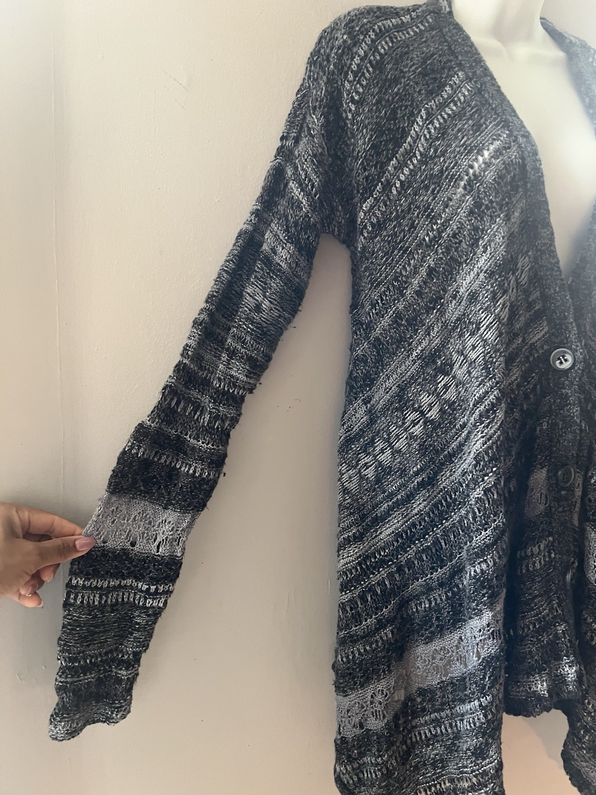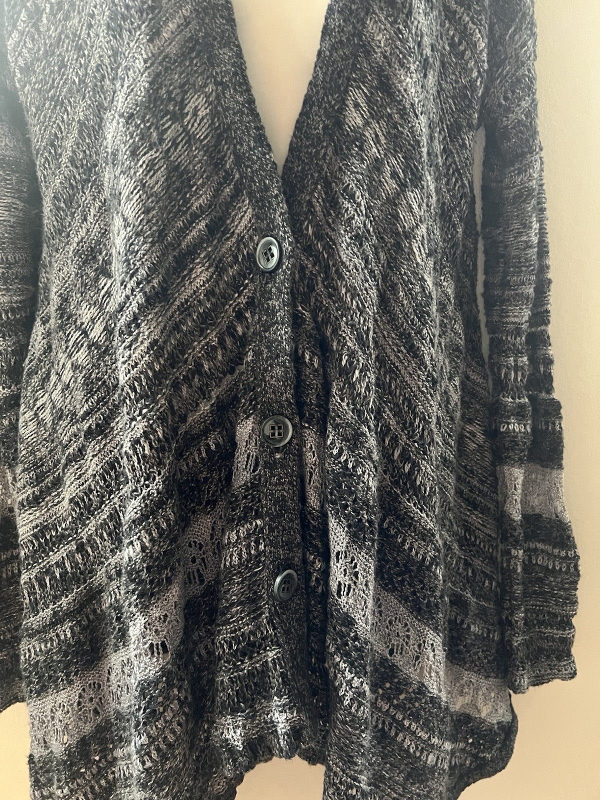 Free People Oversized Button Front Cardigan Women s M Gray Knit Boho Sweater