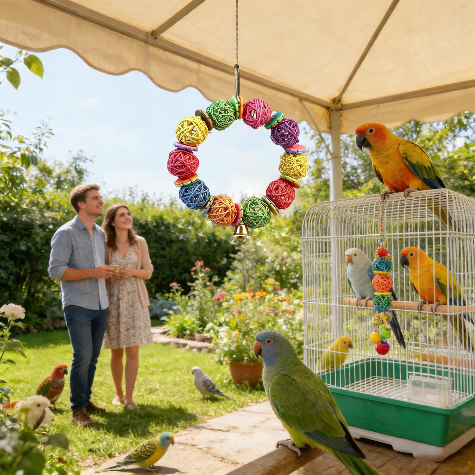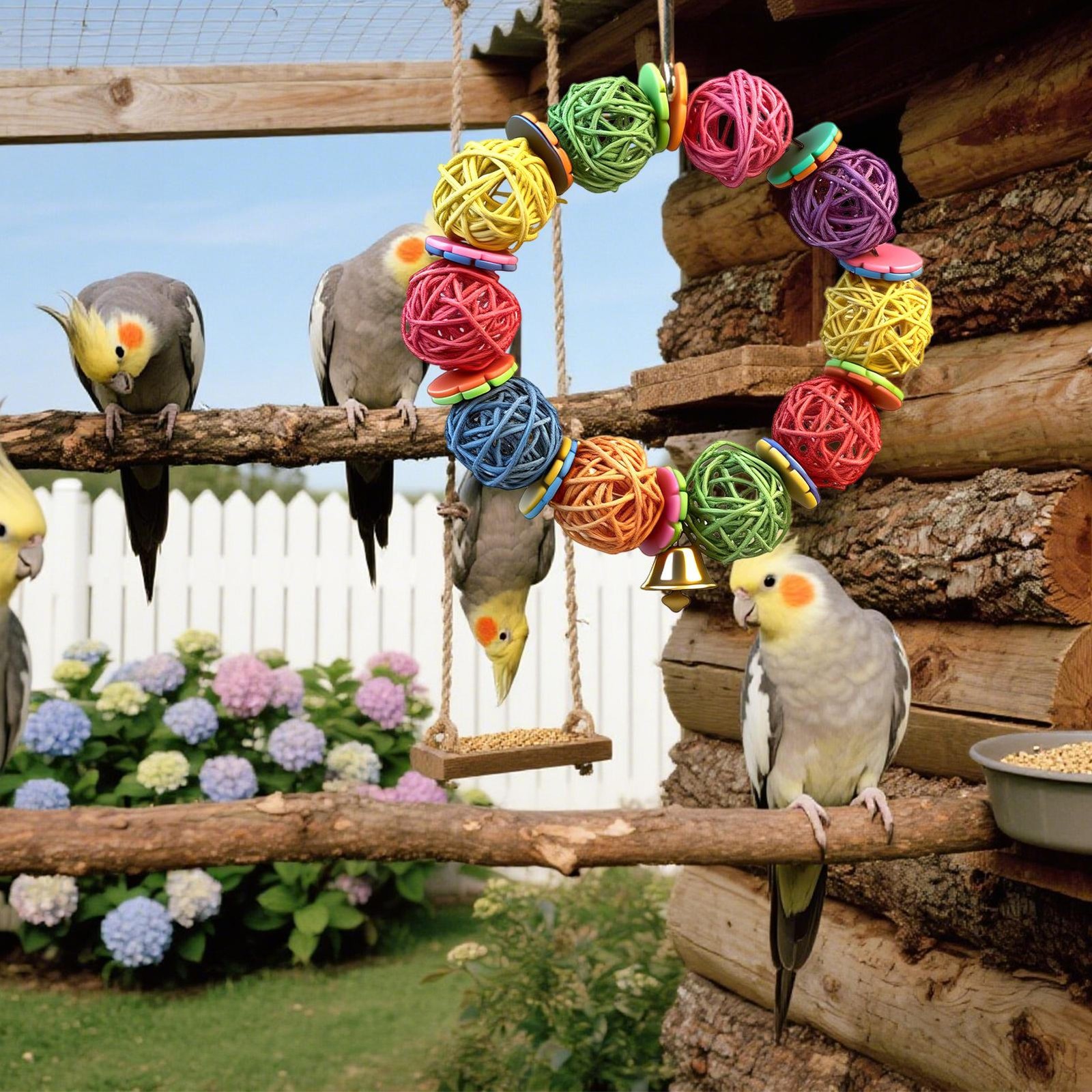 Hanging Parrot Chew With Rattan Balls And Bell Bird Molar For Parakeet Bite Acce