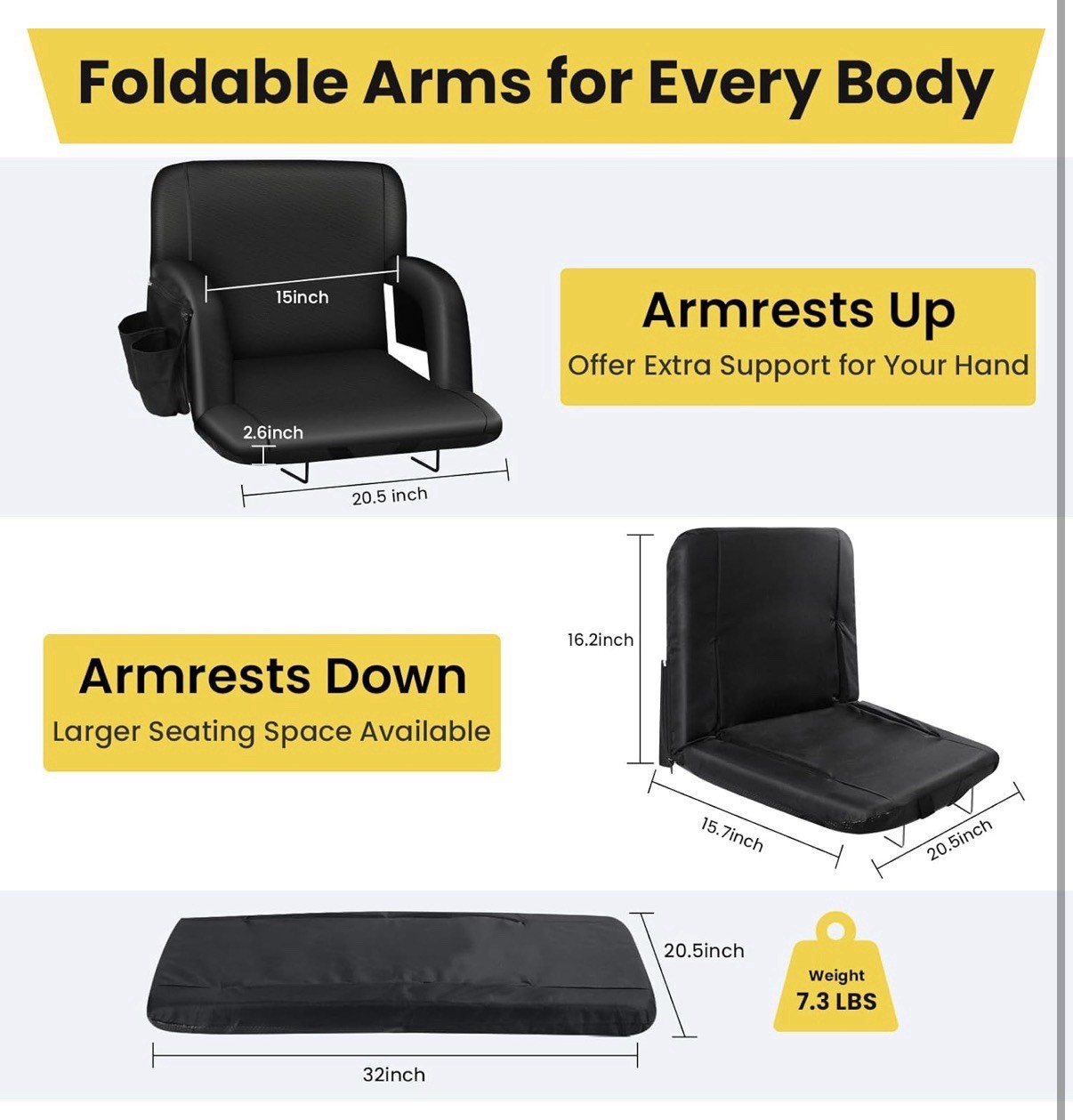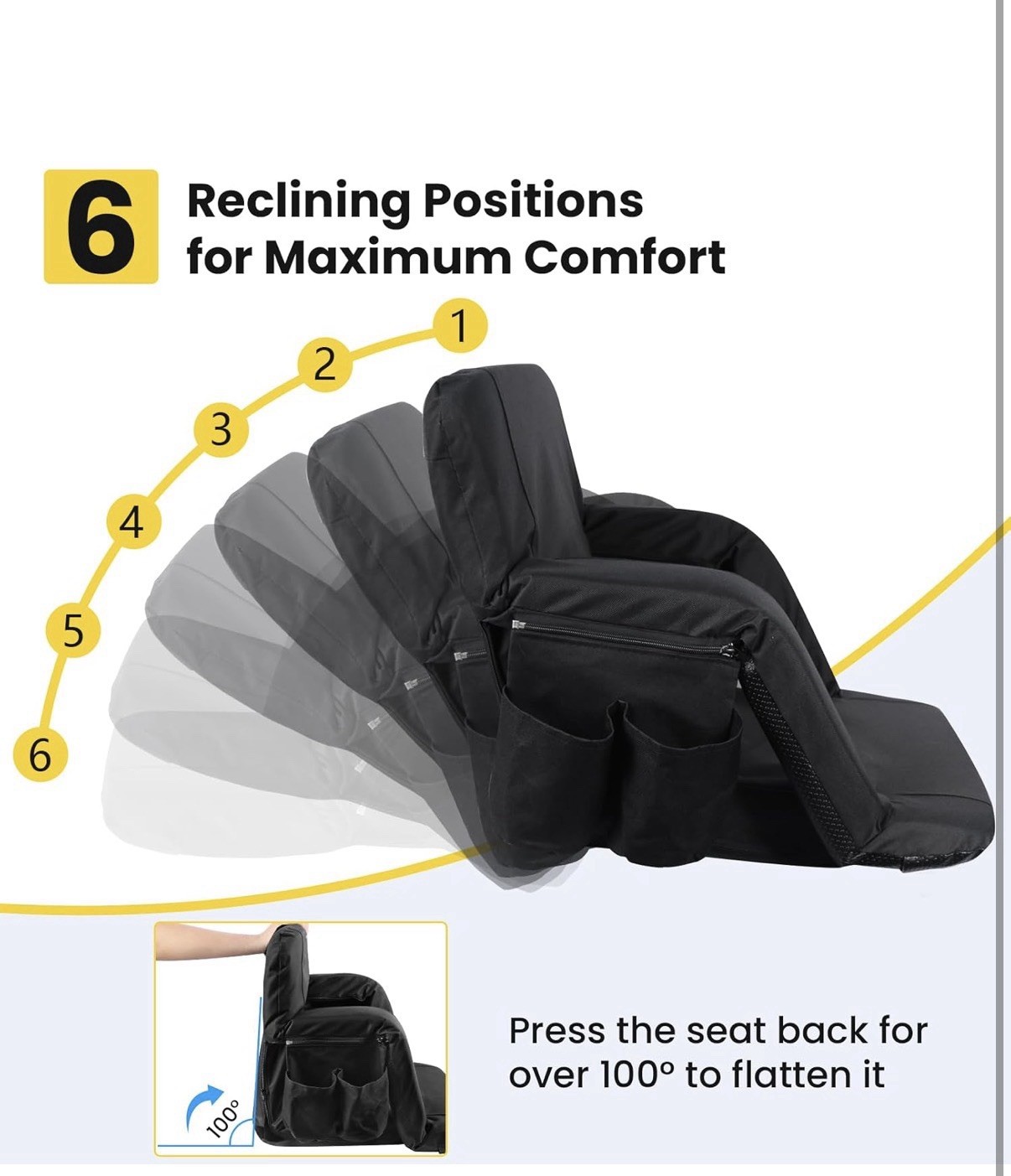 Stadium Seats with Back Support - 2.6''Thick Padded Bleacher Seat,6 Reclining Po