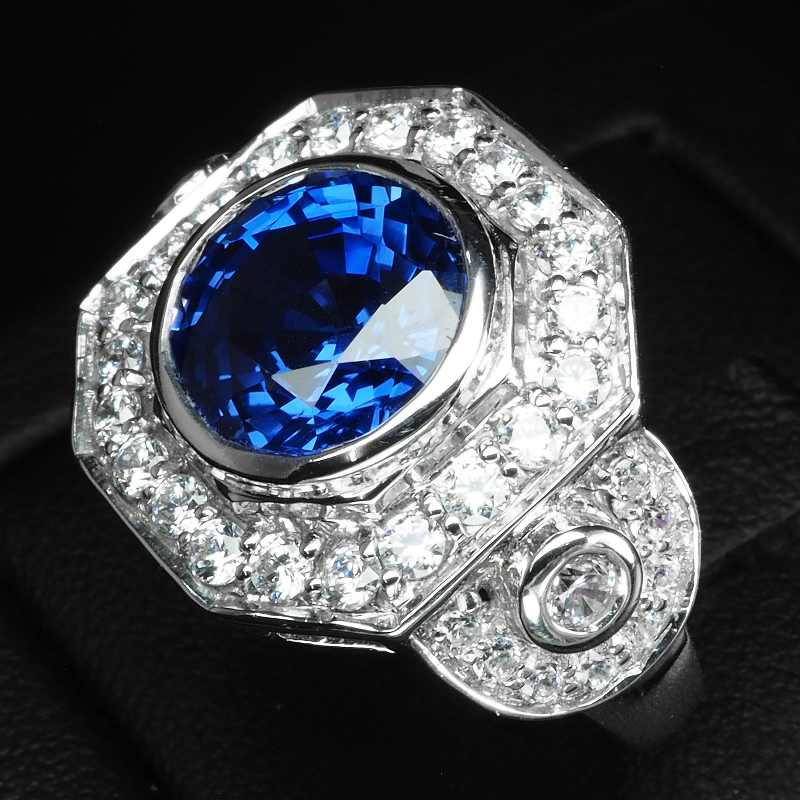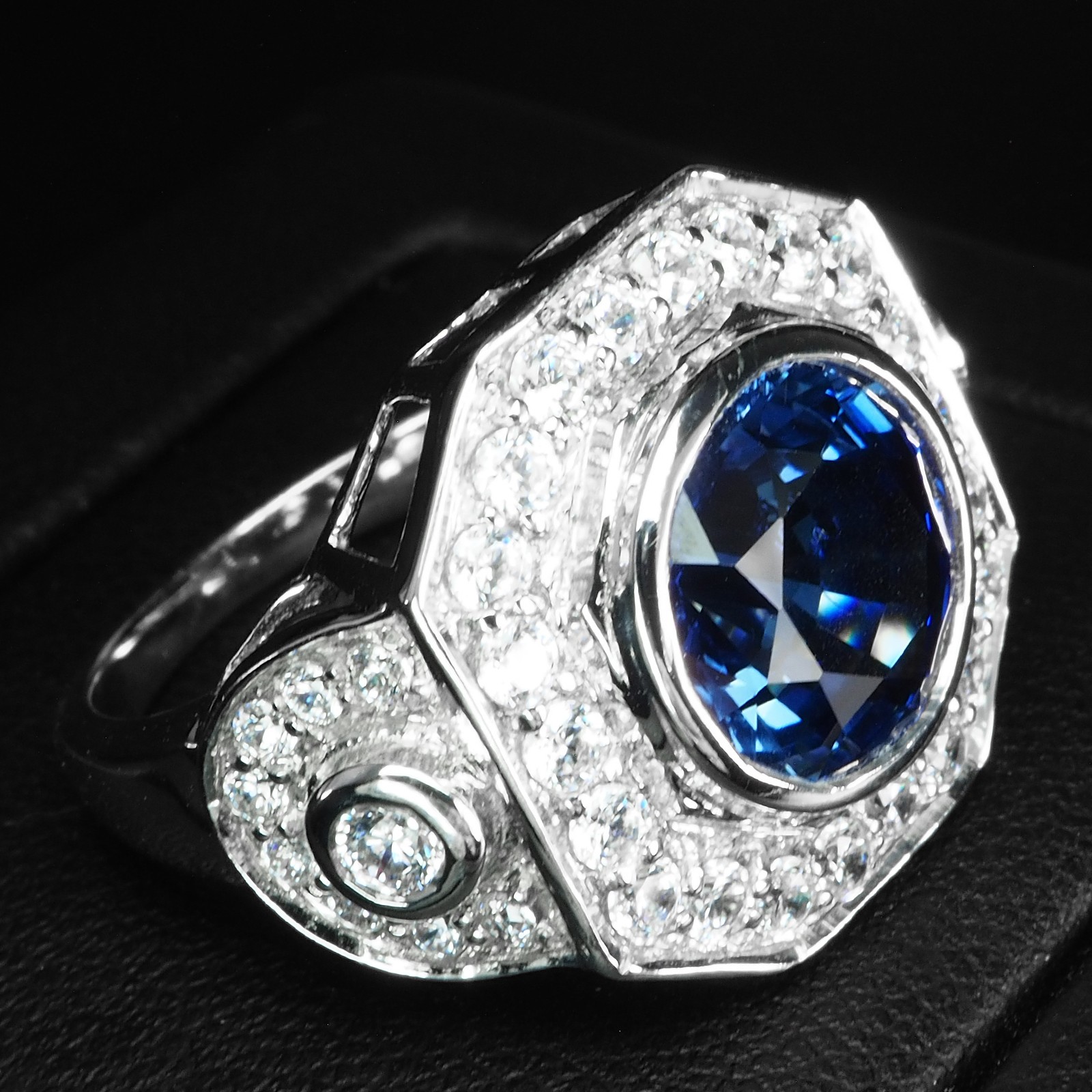 как выглядит Promise Ring, Bezel 5.60Ct Vivid Blue Sapphire 925 Sterling Silver Handmade Gift фото