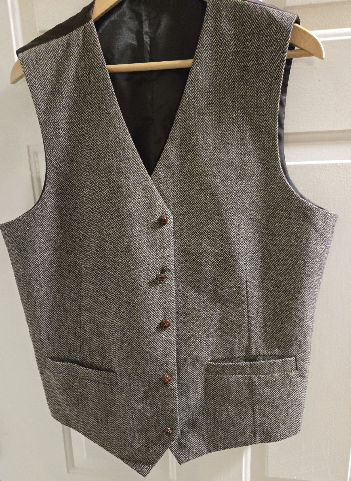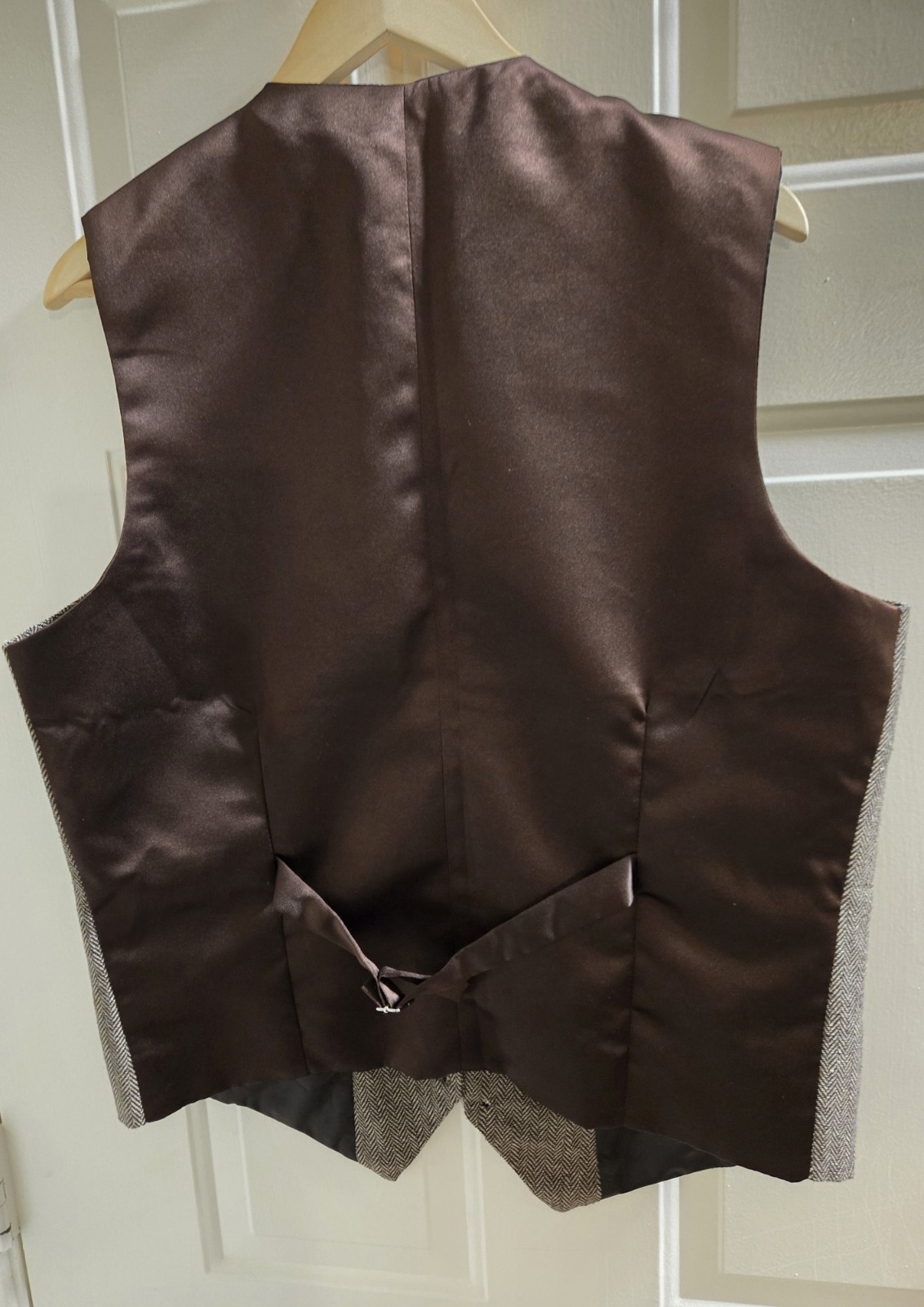 как выглядит Mens Brown Tweed Vest Herringbone Large XL Preowned фото