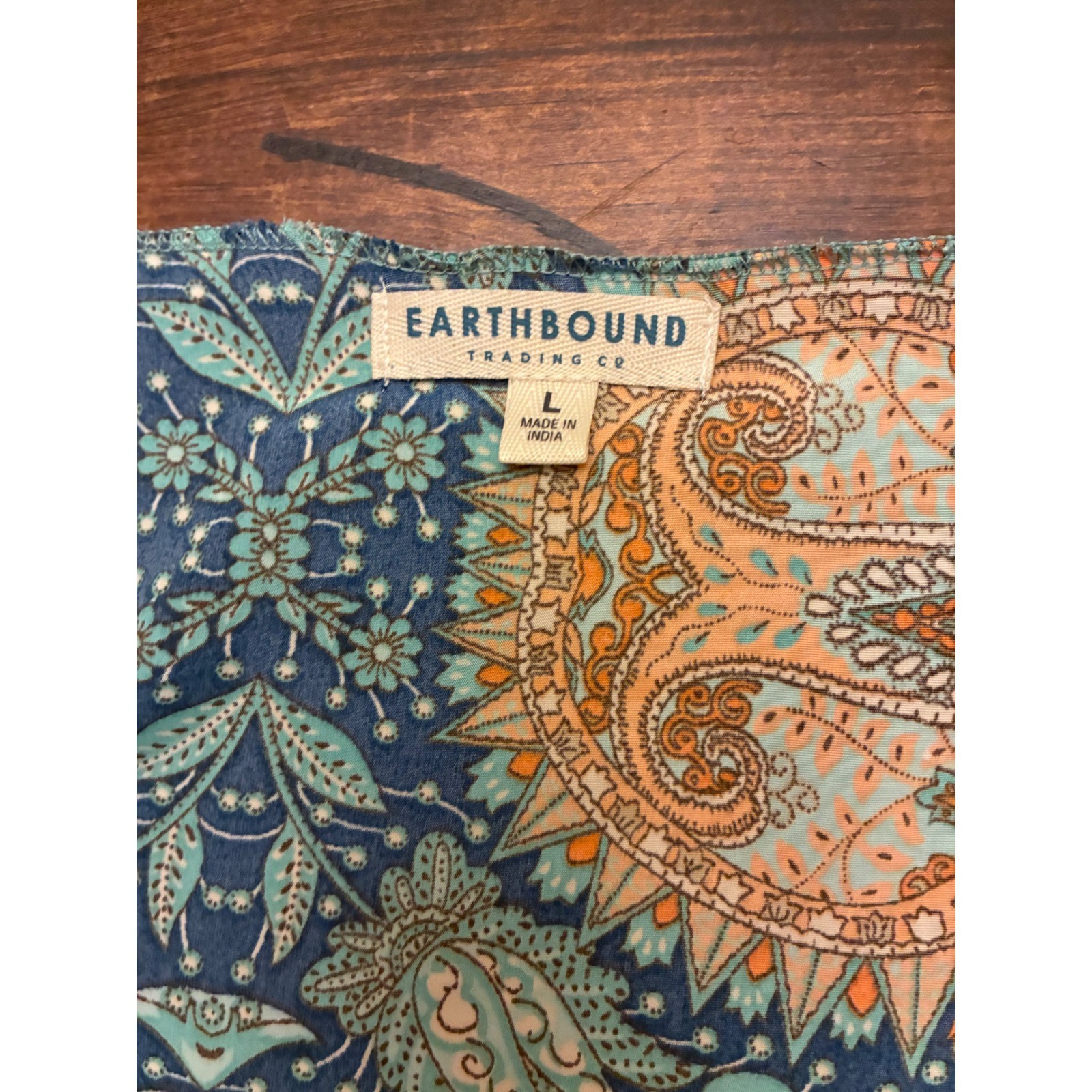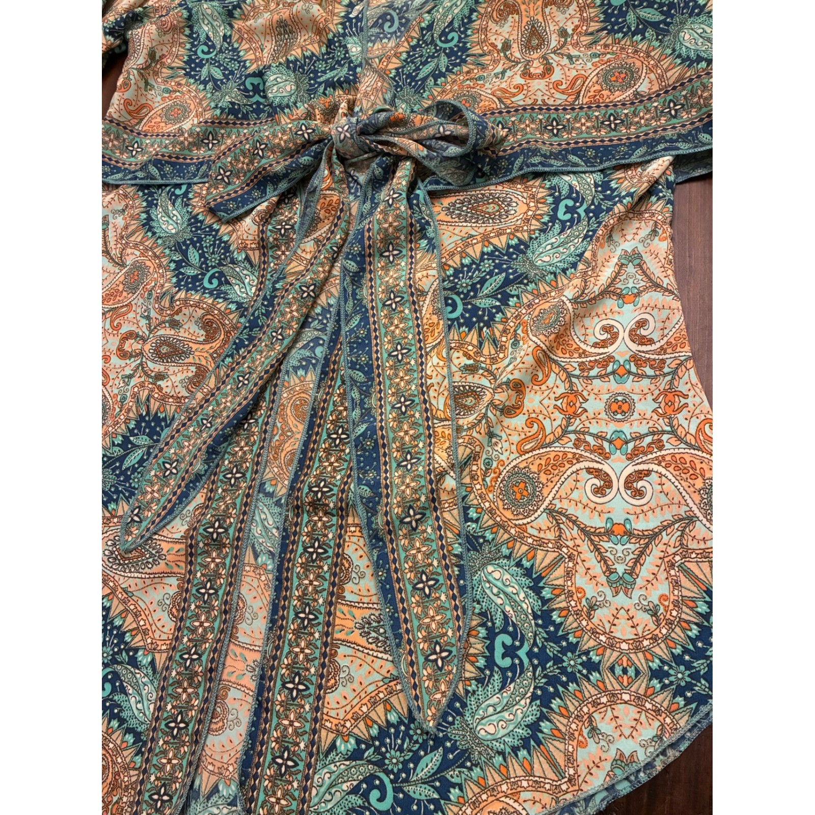 как выглядит Earthbound, Paisley Bell Sleeve, Tie Front Kimono size large фото