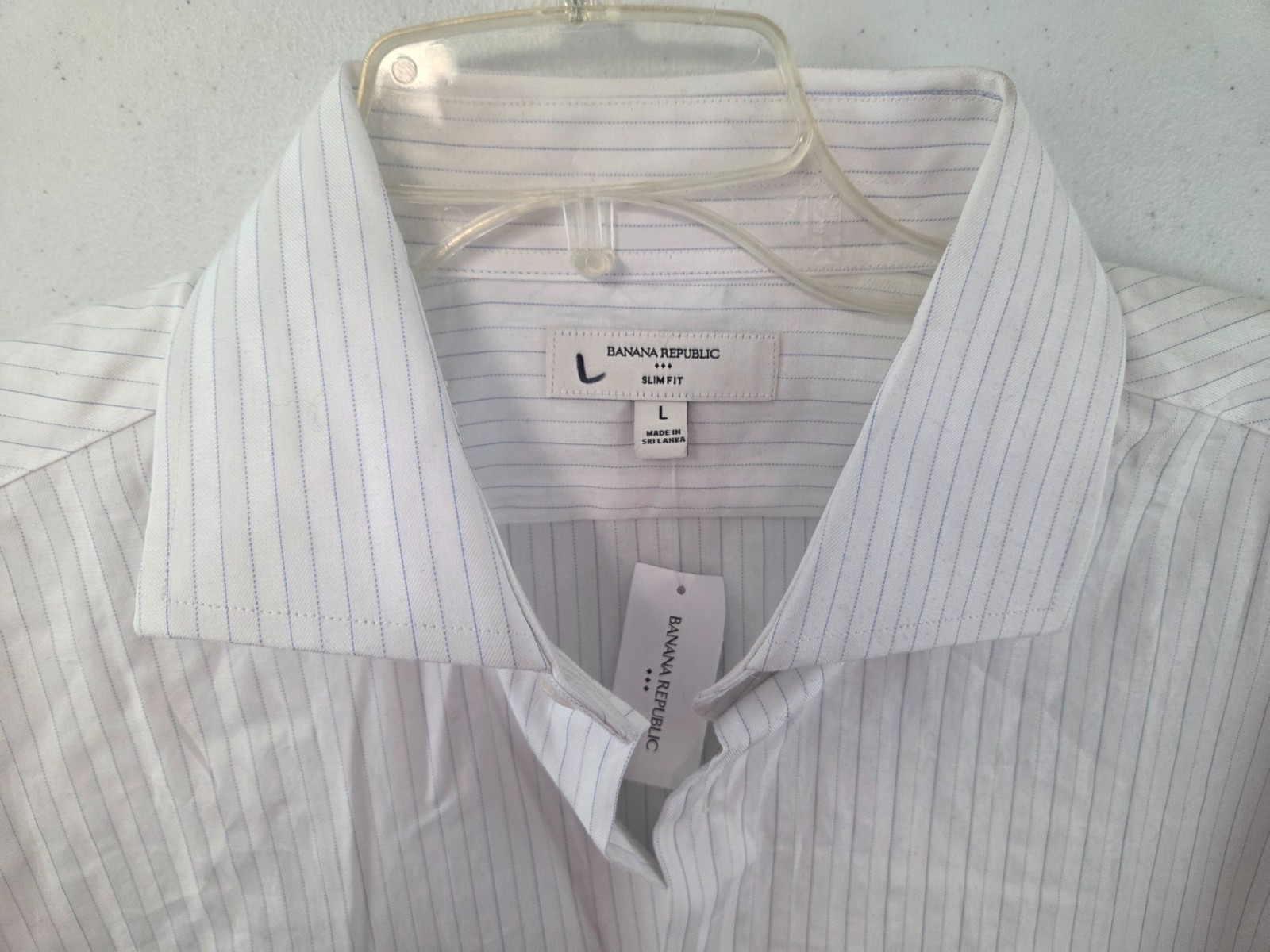 Banana Republic Men's Large Slim Fit Dobby Dress Shirt White Stripe NWT 85
