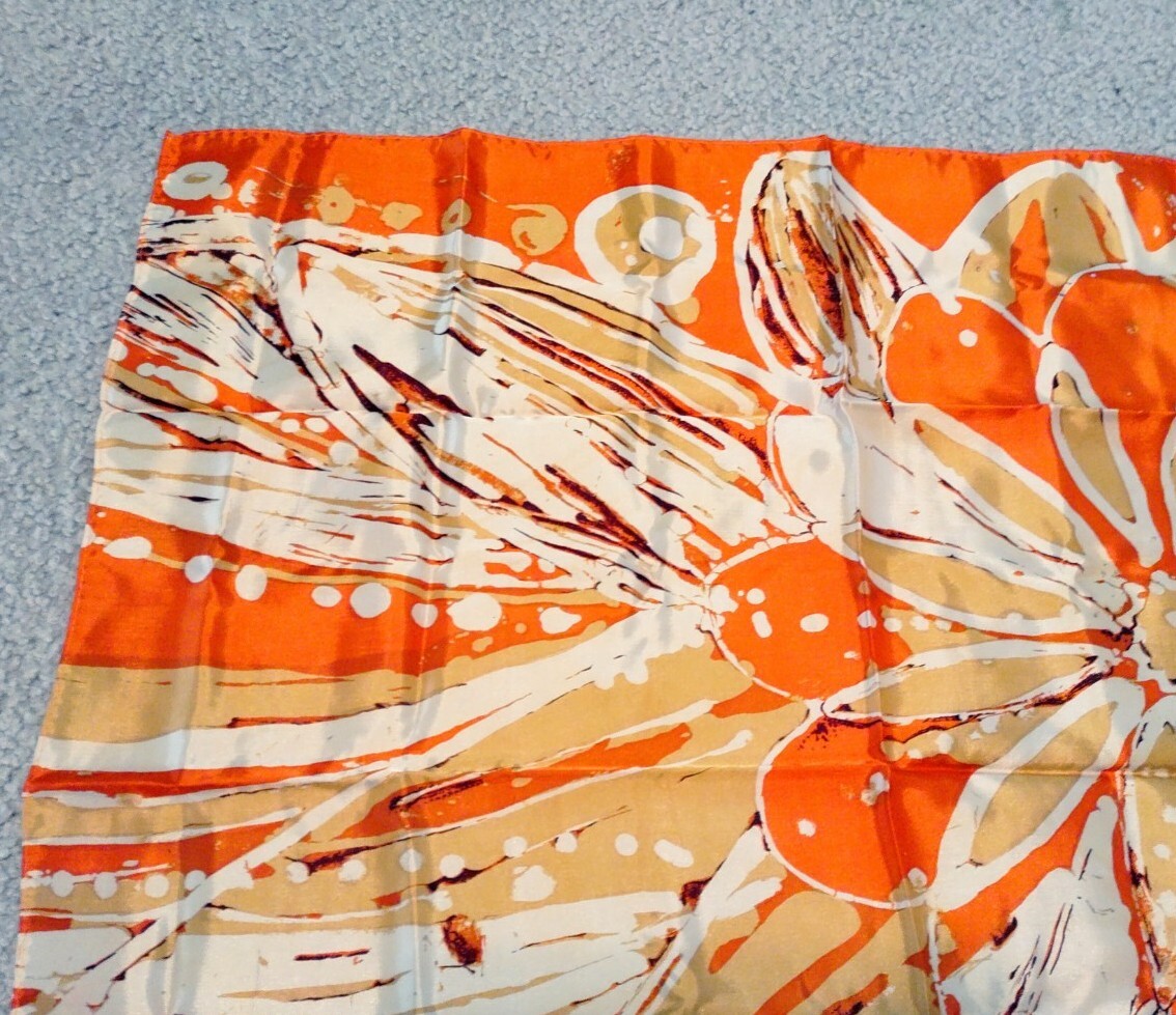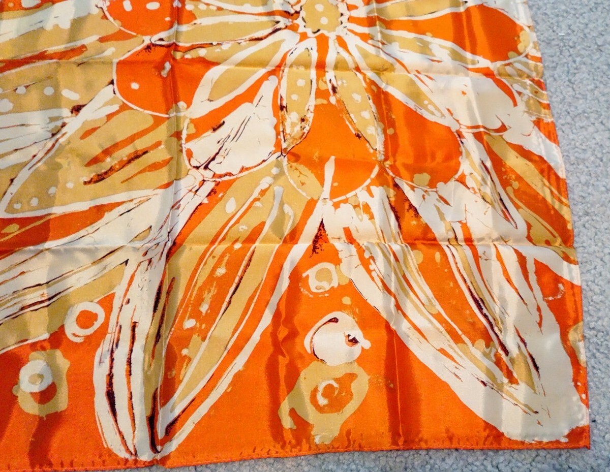 как выглядит Vintage Elizabeth Arden Acetate Scarf Orange 26" x 26" 1980s Japan фото