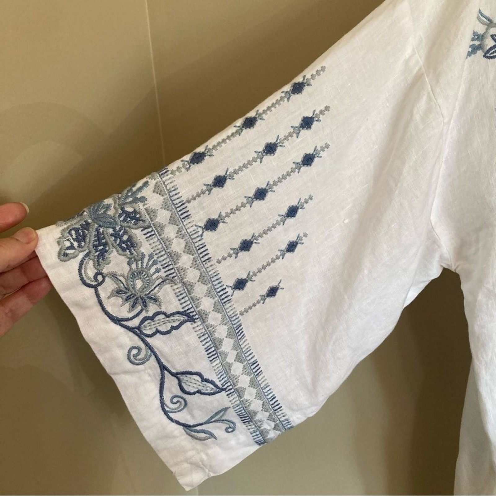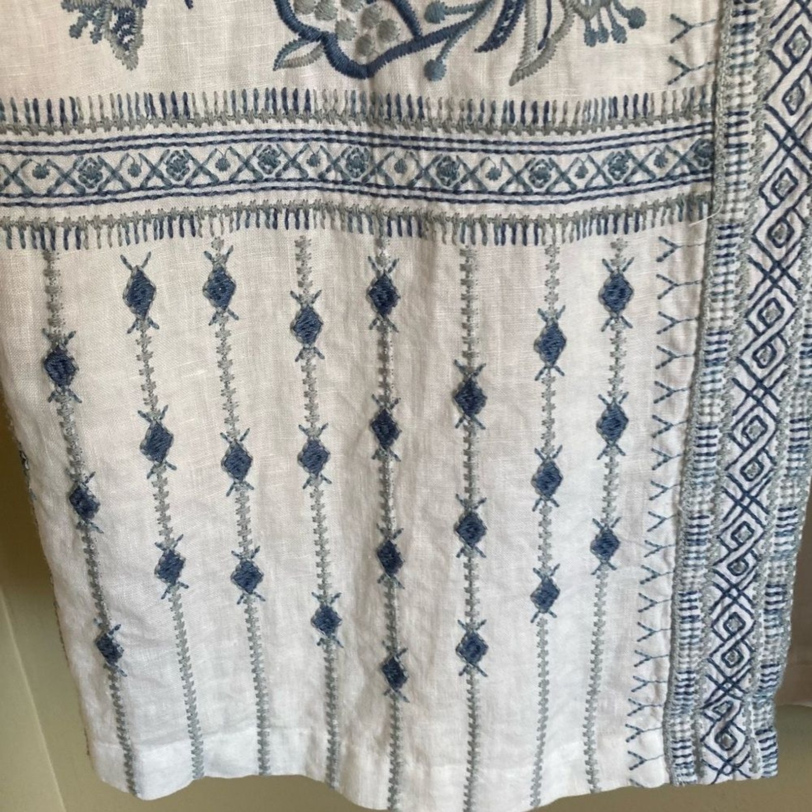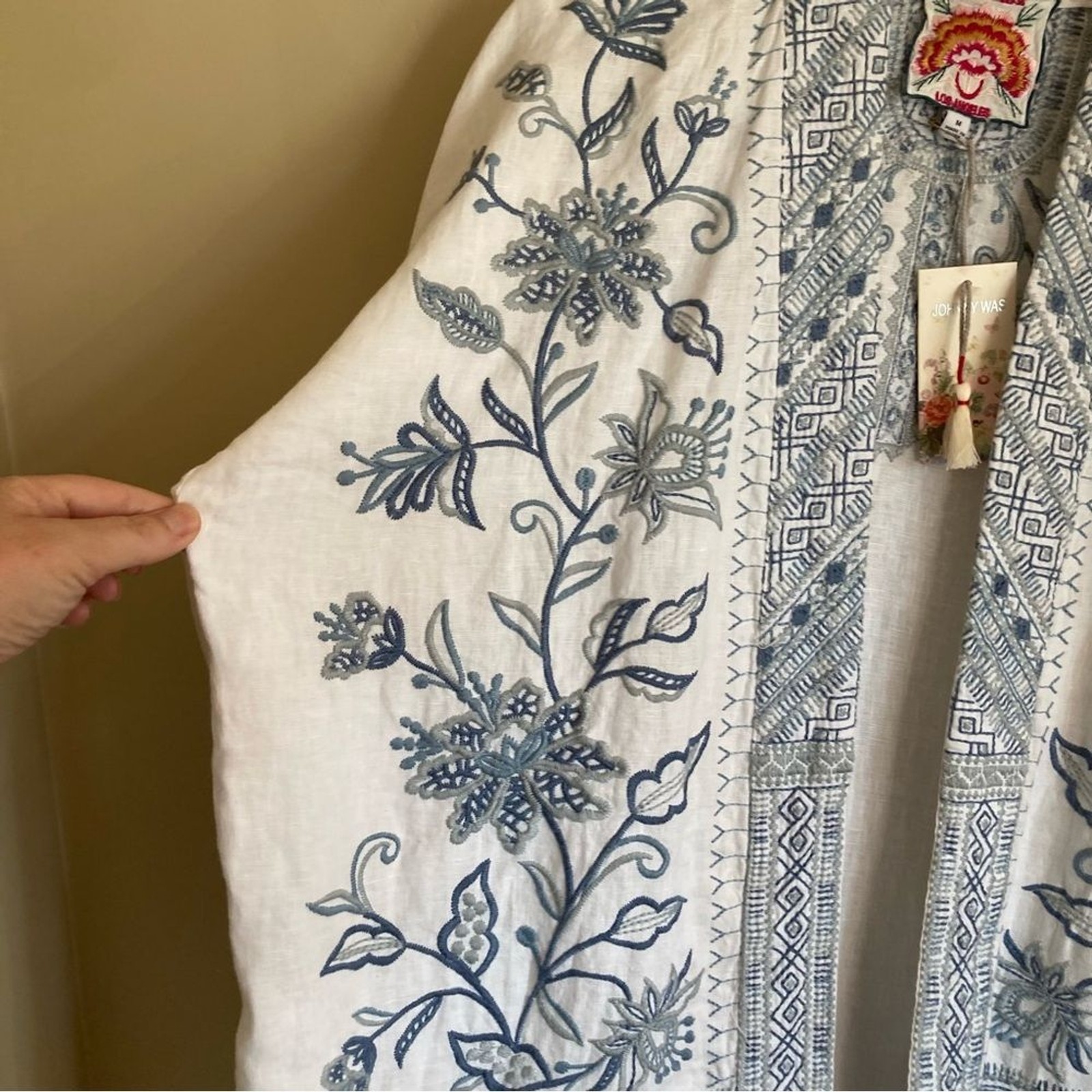как выглядит NEW Johnny Was Maike Linen Kimono Heavily Embroidered Floral Blue White Linen M фото