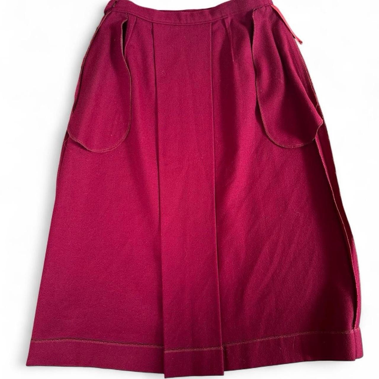 как выглядит Vintage 1970s Burgundy 100 Wool A-line Midi Skirt Size Junior 12 Or 28 EUC фото