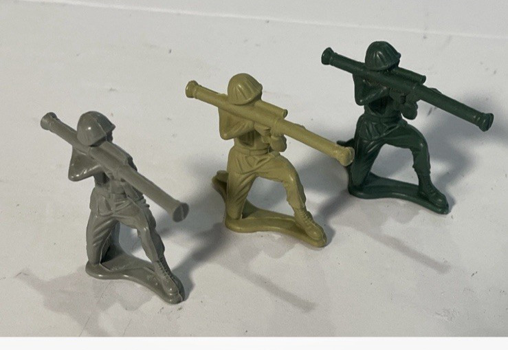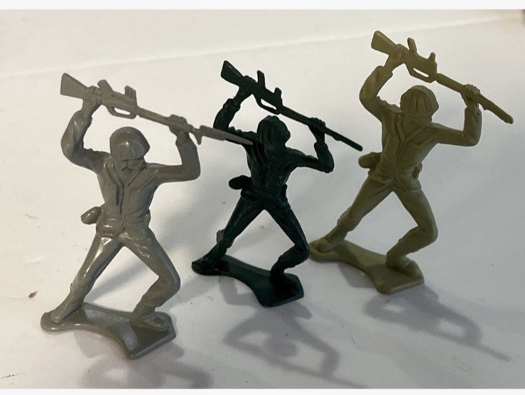 Lot of 68 Vintage 2.25 Army Men/3 Color/ 14 Poses/ Unmarked/ Tim Mee