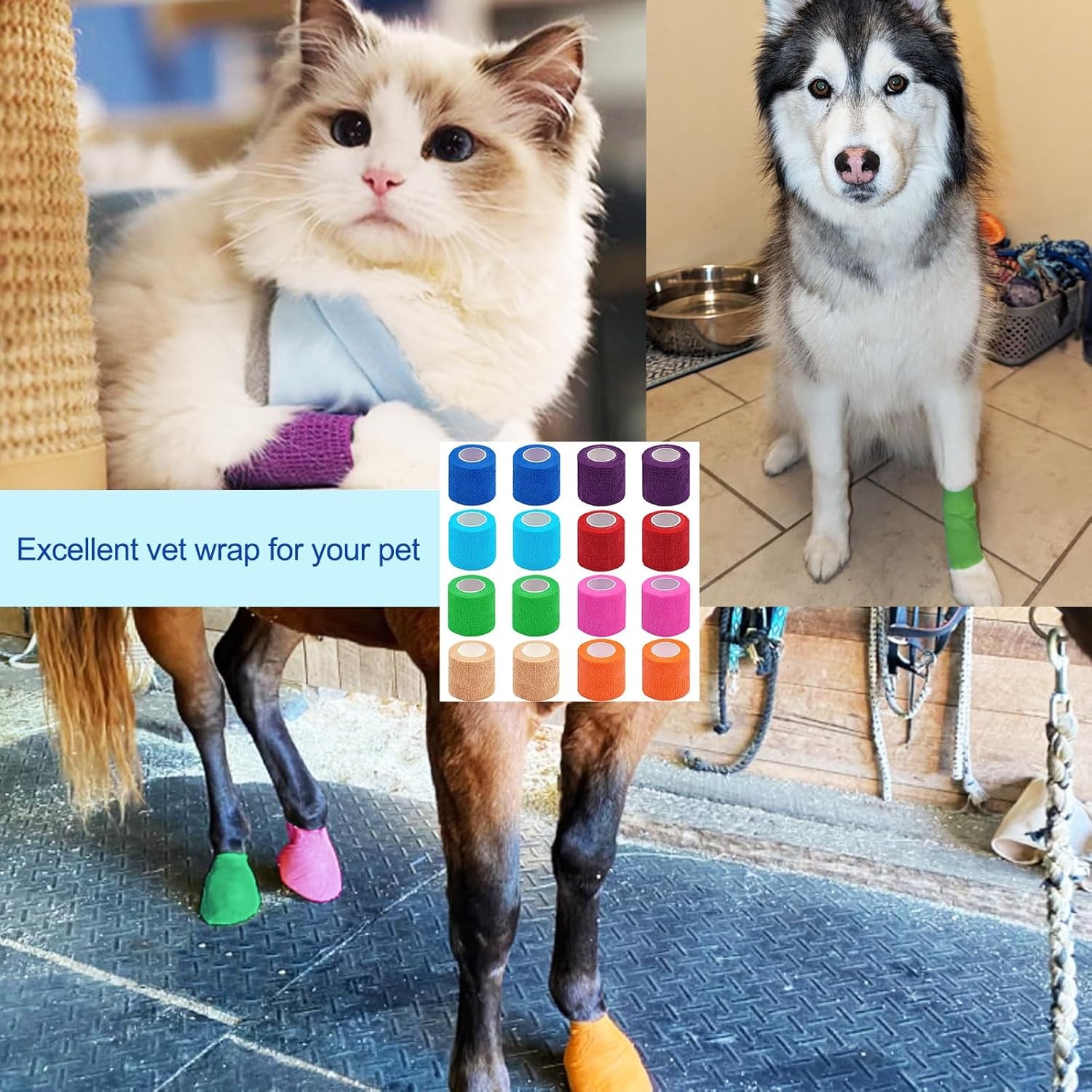 16 Pack Self Adhesive Bandage Wrap, 2 X 5 Yards Multi-Colored Elastic Cohesive