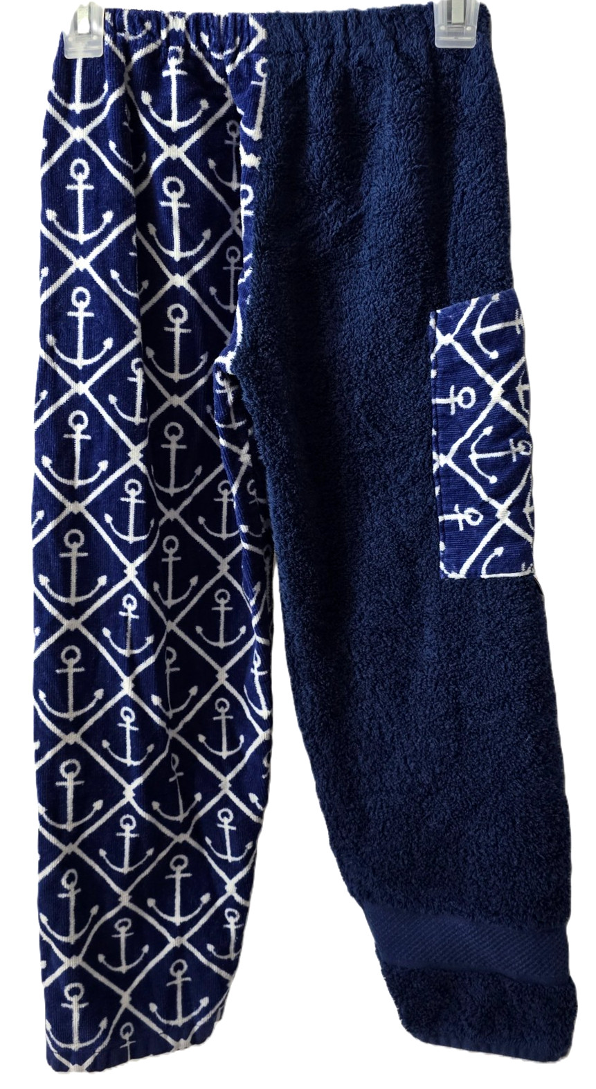Kiki's Nation Towel Pant M 12 Elastic Waist POCKET Blue Anchor Boat Beach Cruise