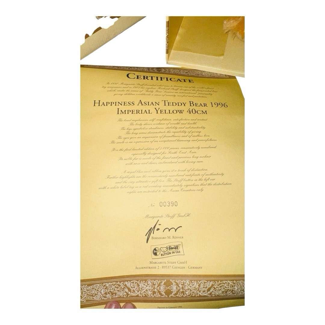как выглядит Steiff Happiness Asian Teddy Bear Imperial Yellow Jointed 16" COA 1996 EUC фото