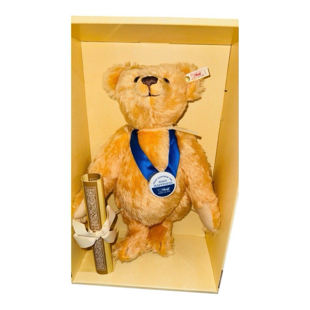 • Steiff Happiness Asian Teddy Bear Imperial Yellow Jointed 16" COA 1996 EUC
