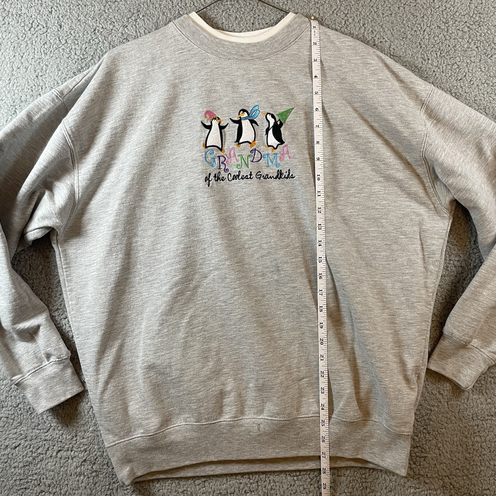 MC Sportswear Penguin Grandma Embroidered Pullover Sweatshirt Women's XL Gray