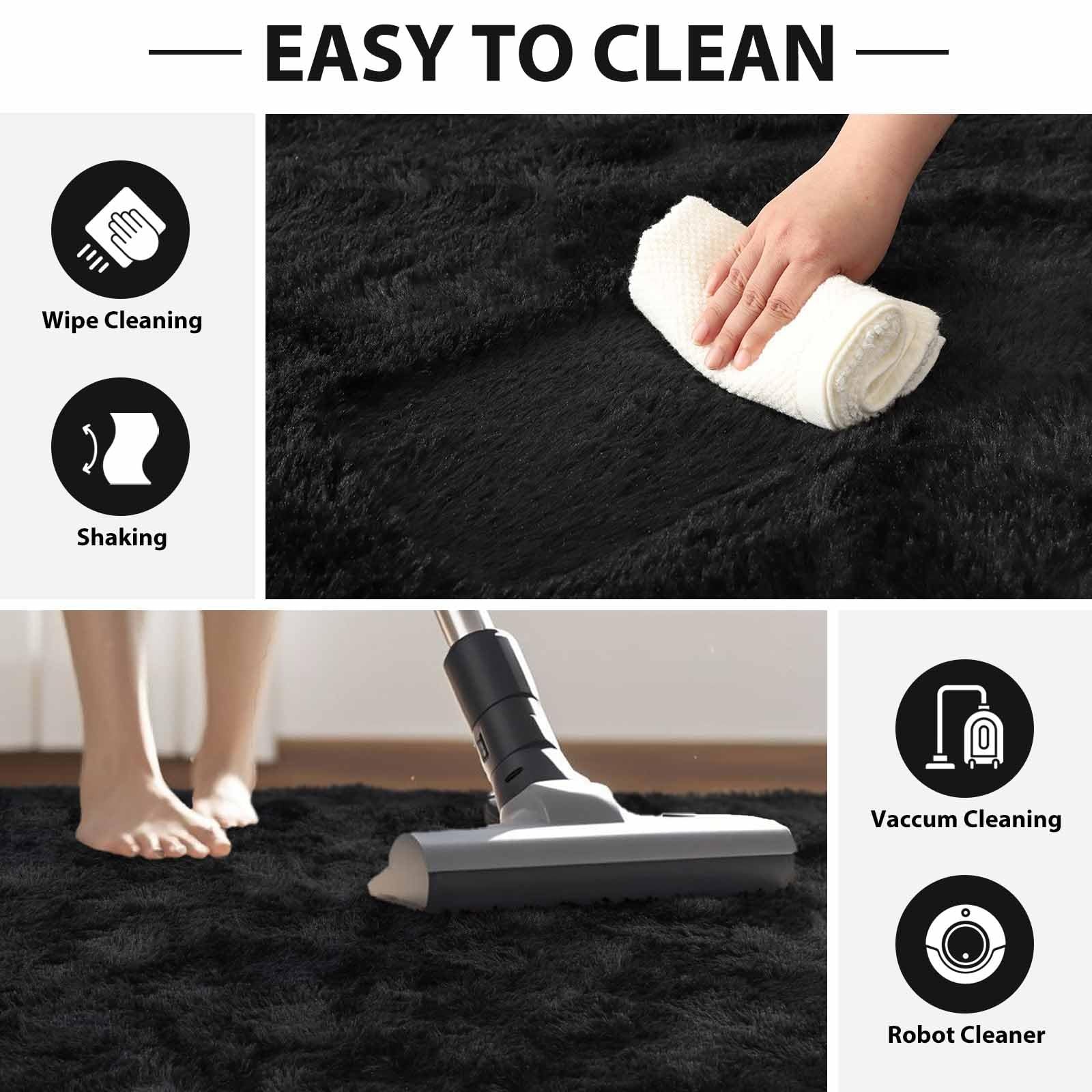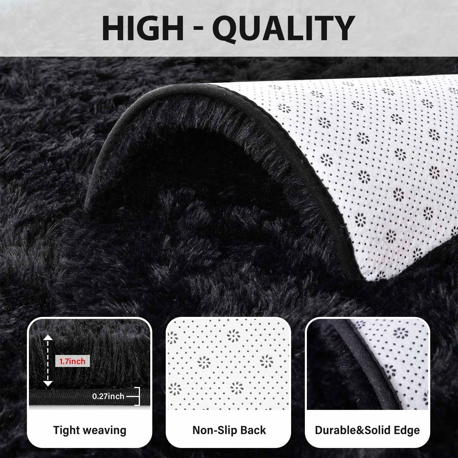 FinRe c 5x8 Feet Black Rugs for Living Room Bedroom, Fluffy Shaggy Area Rug, ...