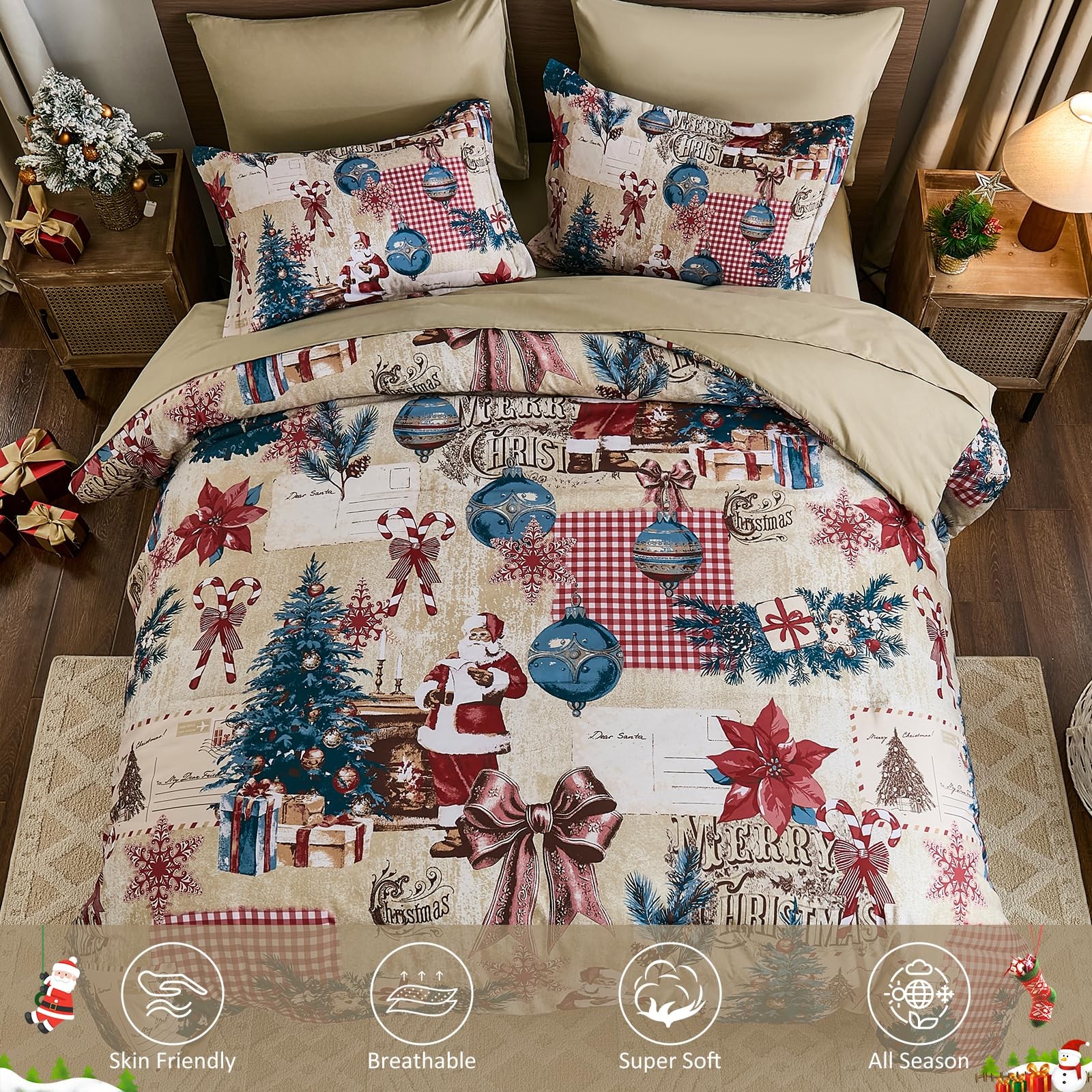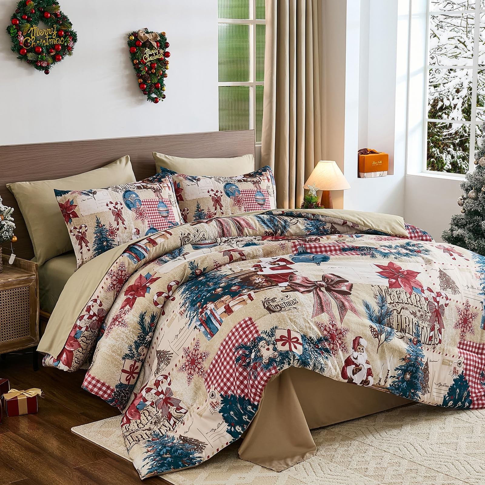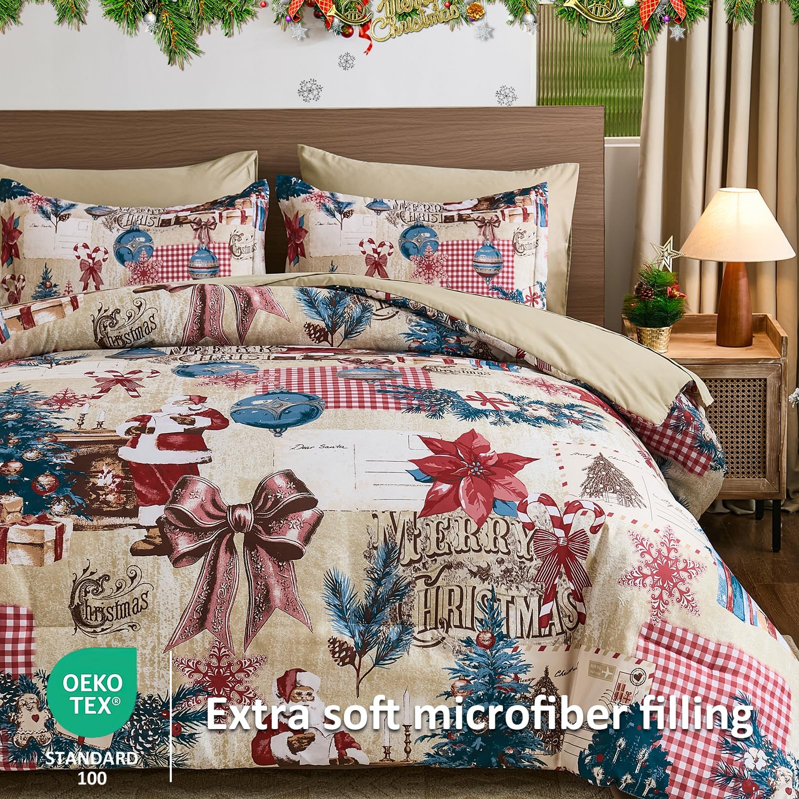 Christmas Comforter Queen Size,Santa Claus 7-Piece Bed in A Bag,Red Blue Comf...