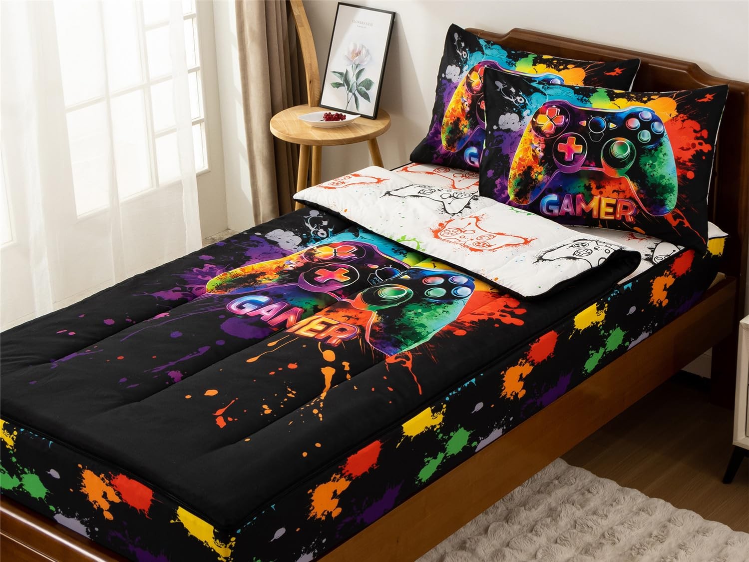 как выглядит Gamer Printed Zipper Bedding Sets Twin for Kids Boys Lightweight Microfiber T... фото