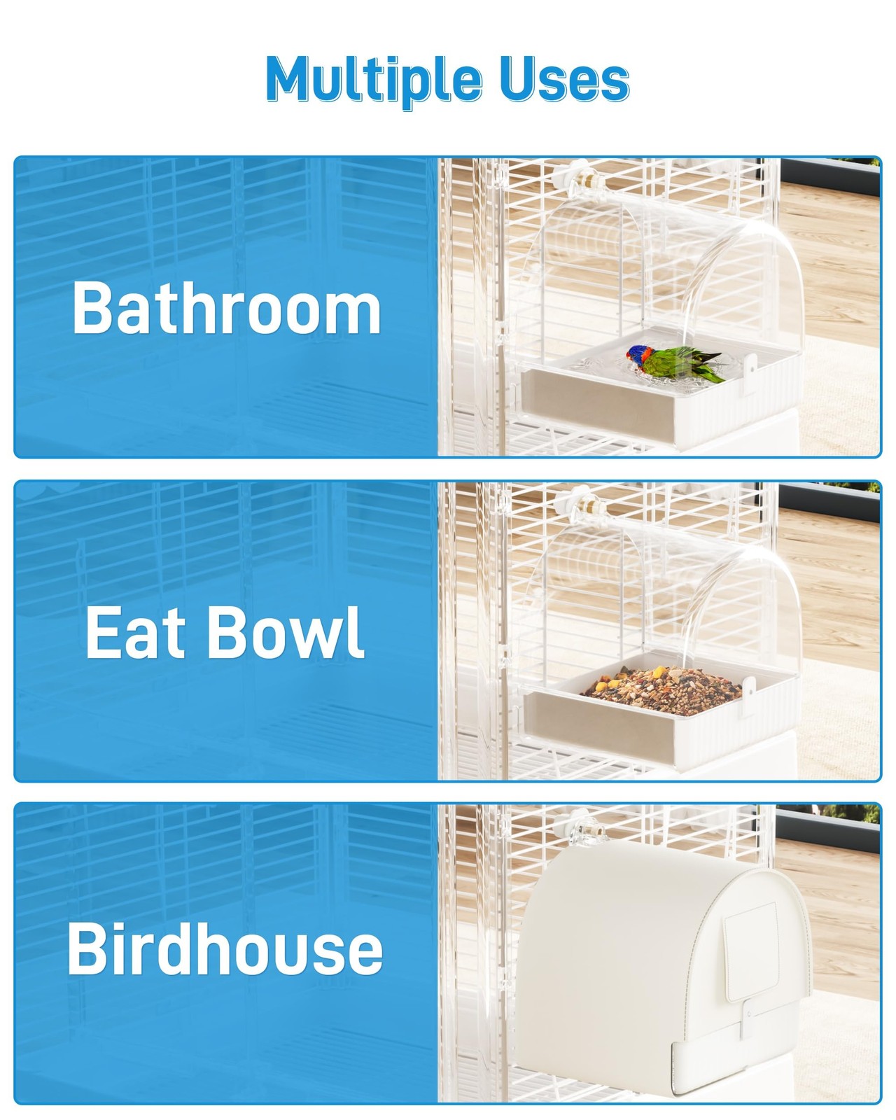 BUCATSTATE Hanging Bird Bath for Cage with Cover, 3 in 1 Multifunction Bird B...