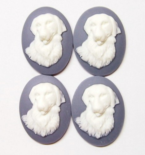 4 of 40x30mm White over Gray Blue Golden / Labrador Retriever Dog Cameo Cabochon