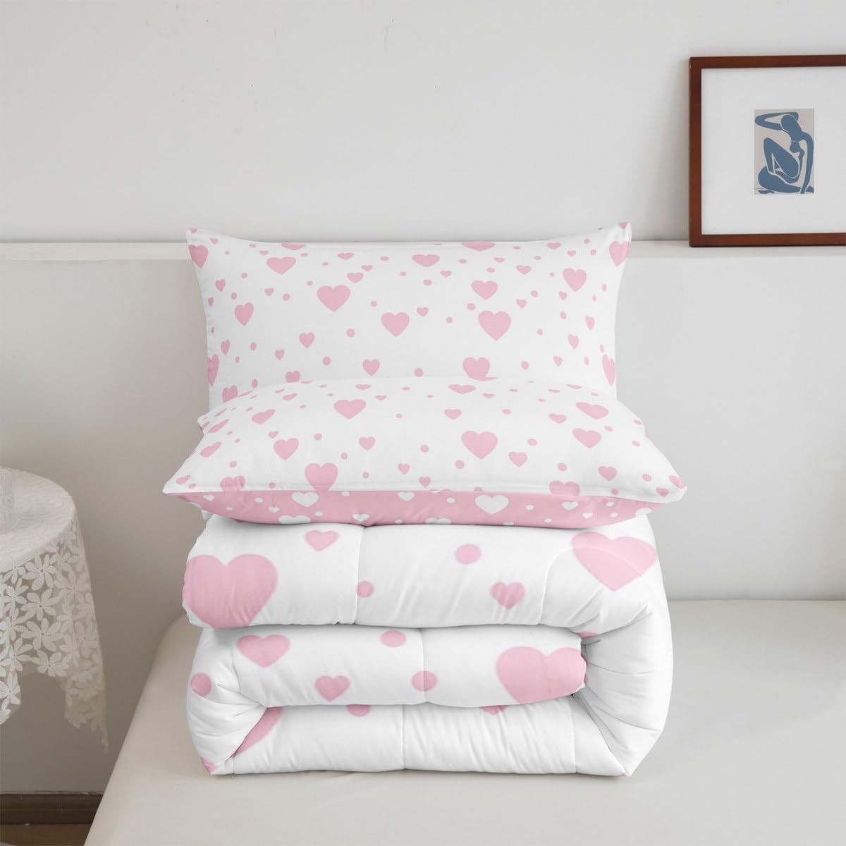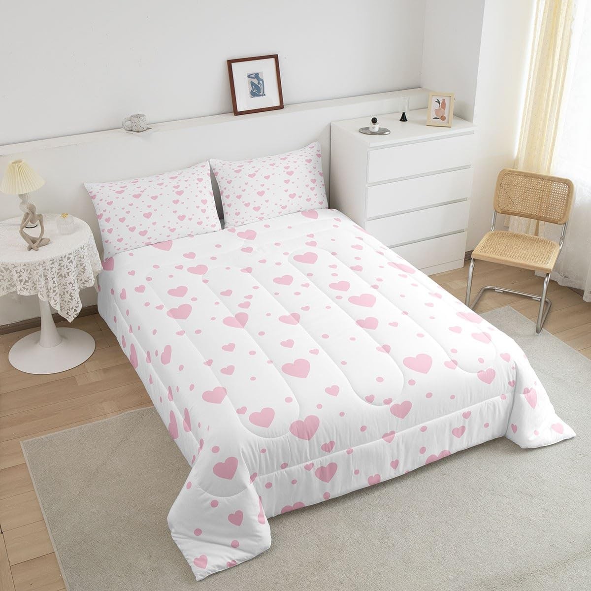 Hearts Bedding Set Queen, Cute Love Hearts Comforter for Boys Girls Pink and ...